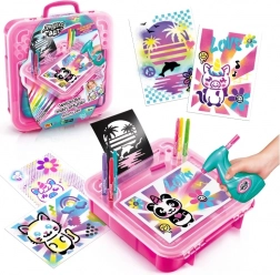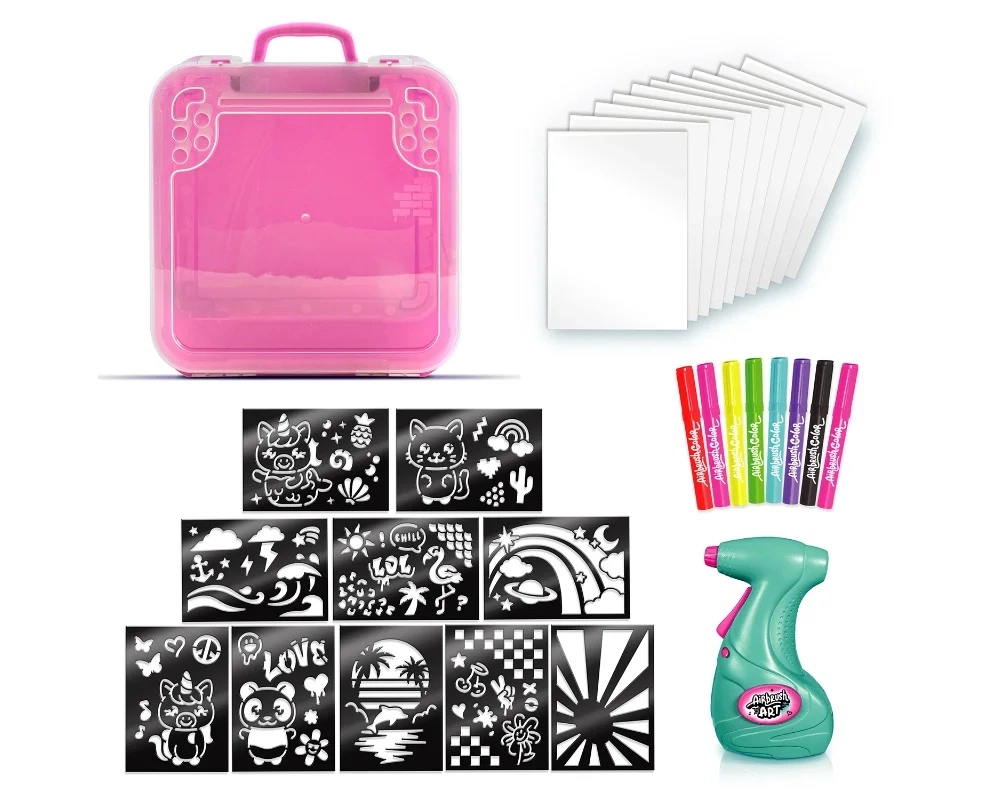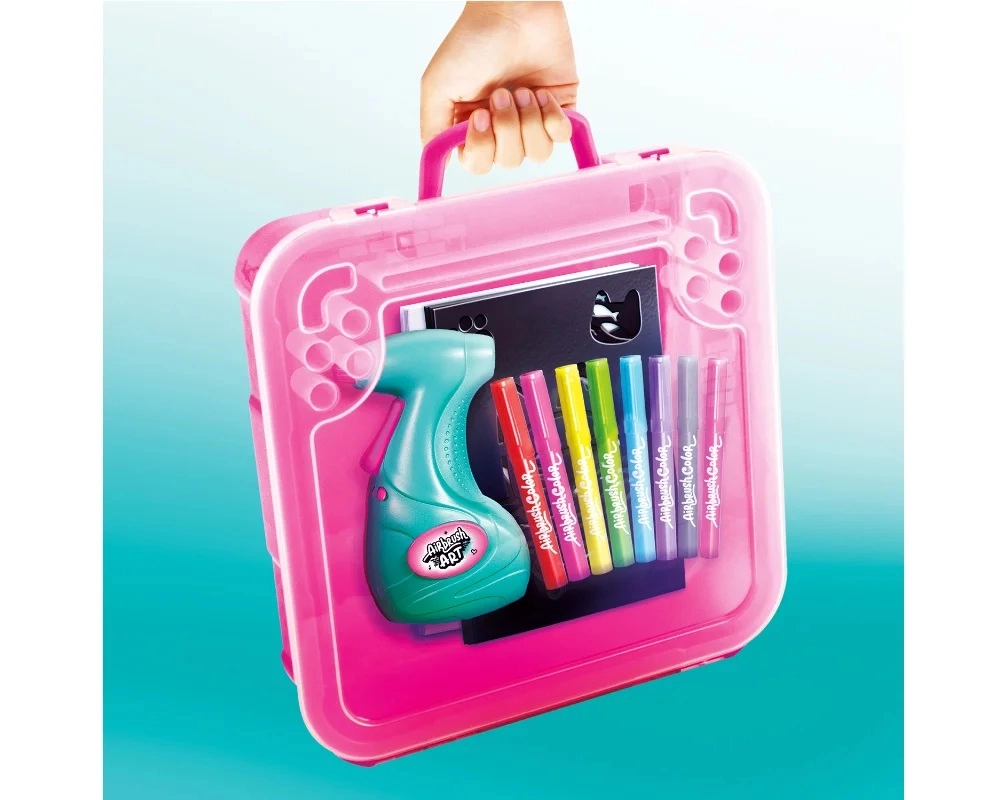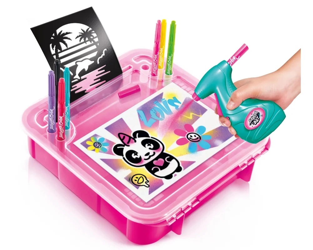 Légère et portable, la valisette renferme tout ce dont un petit artiste a besoin : aérographe, feuilles, pochoirs et couleurs. Grâce à sa manipulation simple et à sa conception sûre, le set fait un excellent cadeau qui favorise la motricité fine, la créativité et l’expression de soi.