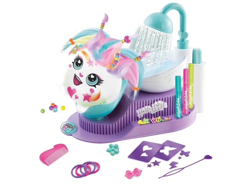Découvrez un kit créatif grâce auquel les enfants dès 6 ans transforment une peluche en une œuvre d’art originale. Avec l’aérographe électronique en forme de sèche‑cheveux, 6 couleurs et jusqu’à 120 pochoirs réutilisables, ils créent des motifs colorés qui se modifient facilement après lavage. Le set comprend une station de lavage avec un véritable jet d’eau et plus de 20 accessoires capillaires pour le coiffage. Le coffret développe la créativité, la motricité fine et offre des heures de jeu interactif.