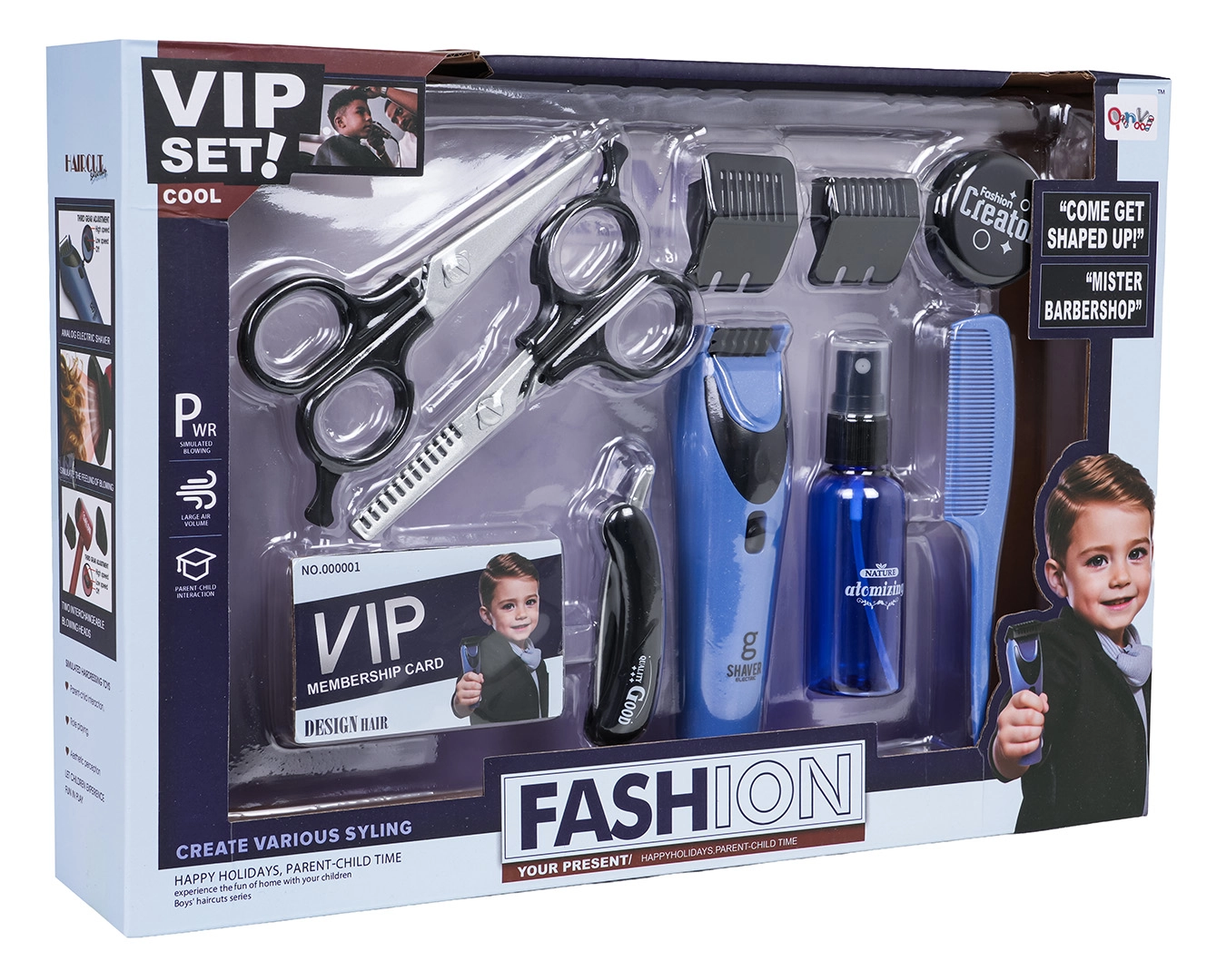 La vedette du set est la tondeuse avec effets sonores et lames mobiles pour un réalisme maximal. Grâce à 11 pièces d’accessoires, les enfants peuvent « servir » un client de A à Z — de la coupe au styling jusqu’au soin de la barbe.