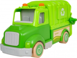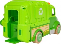 Les enfants adoreront le lève-bac manuel, le conteneur ouvrant et basculant et la possibilité de « vider » les déchets. La boîte contient une poubelle, un panneau attention, un balai et deux personnages pour enrichir les scénarios de jeu. Le camion possède aussi un œillet pour fixer une cordelette afin de le tirer facilement.