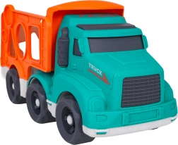 Le set offre un déplacement fluide sur le sol, un dételage facile de la remorque et la possibilité de transporter les petites voitures et les formes. Parfait pour le jeu en solo comme pour les découvertes partagées, dehors comme dedans.
