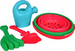Joyeux ensemble de jeux de sable pour enfants dès 3 ans comprenant un seau pliable, une pelle, un râteau et un arrosoir. Conception légère et sûre en plastique et silicone, idéale pour le bac à sable et la plage. Le seau pliable fait gagner de la place dans le sac à dos et se transporte facilement.