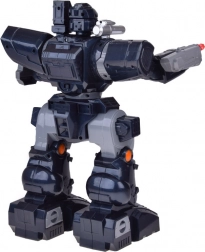 - Avancer/reculer, rotation, danse avec mélodies, effets lumineux et sonores, projecteur sur l’épaule, tir de fléchettes souples, mode démo, réglage du volume