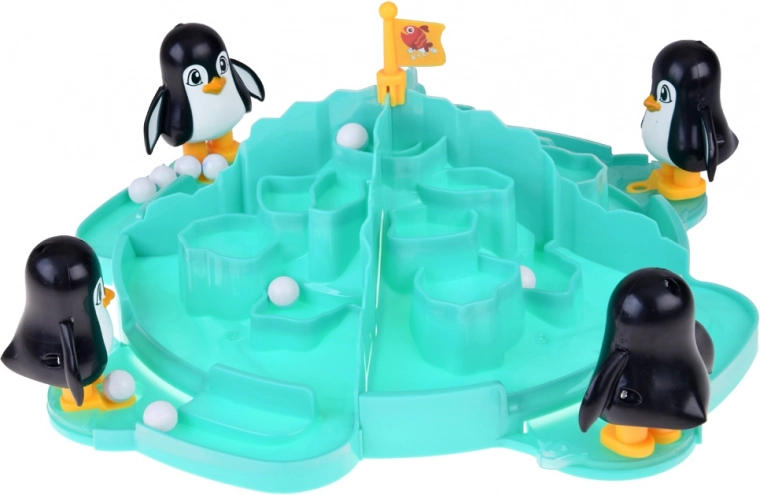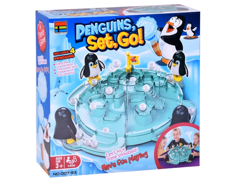 Appuie sur la tête du pingouin et envoie la boule de neige sur la piste glacée. Un mécanisme simple, amusant et facile à utiliser même pour les plus petits.