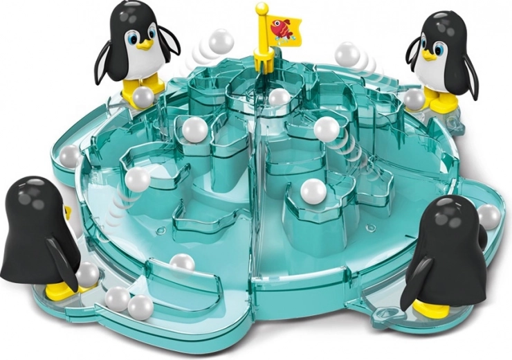 Le plateau turquoise rappelle un labyrinthe de glace avec plusieurs pistes et obstacles. L’objectif est de remplir ses plates-formes ou d’atteindre le sommet avec le drapeau.