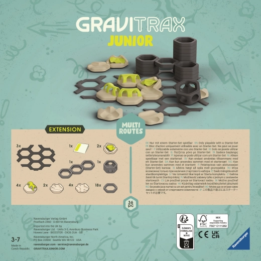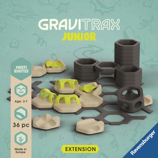 L’extension offre plus de possibilités pour guider les billes dans différentes directions et créer des parcours complexes riches en surprises. Idéal pour agrandir les sets GraviTrax Junior existants, elle favorise le jeu créatif et autonome des enfants dès 3 ans.