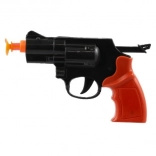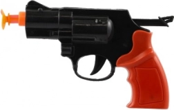 Un pistolet en plastique avec embout orange, idéal pour les petites mains – facile à tenir, à manipuler et à glisser dans un sac à dos.