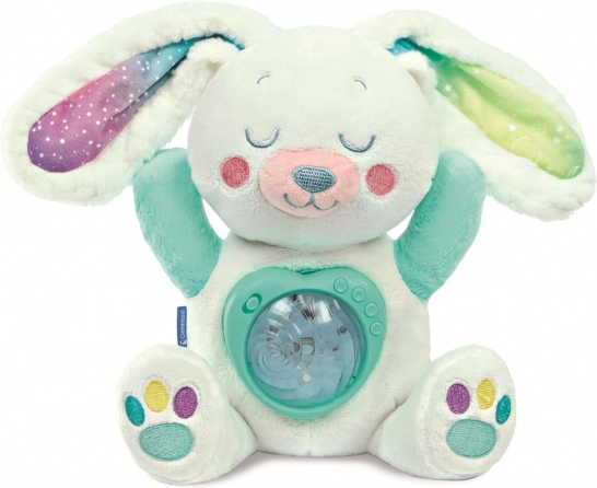 Adorable lapin en peluche avec projecteur intégré offrant une aurore boréale apaisante en 10 couleurs et des bruits blancs ainsi que des mélodies douces pour faciliter l’endormissement. Grâce au volume réglable et au changement de couleur de la lumière, vous adaptez l’ambiance précisément aux besoins de bébé. Le projecteur peut être retiré, afin que l’enfant puisse se blottir en toute sécurité contre la peluche douce.