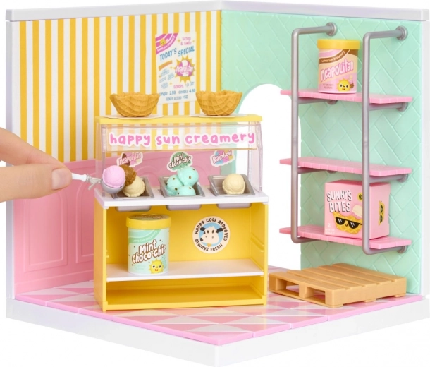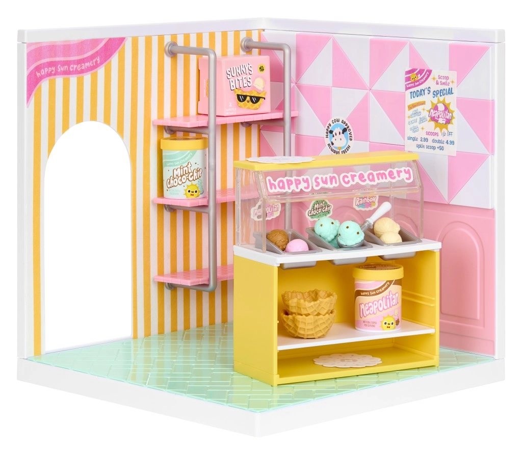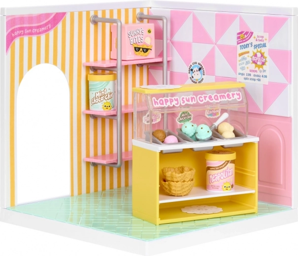 Vitrine à boules, pelle, gobelets et étagères – crée ton propre Happy Sun Creamery et sers des mini glaces comme un pro.