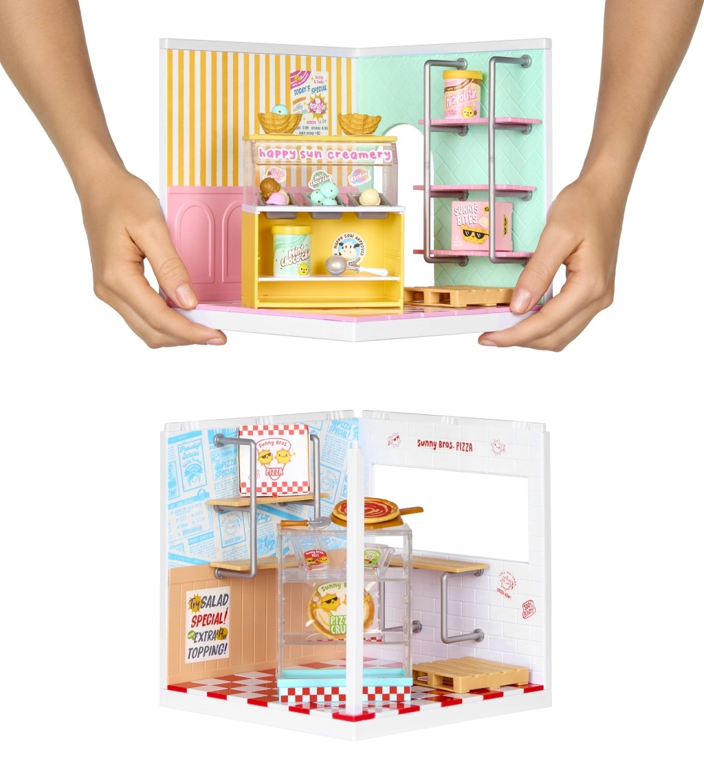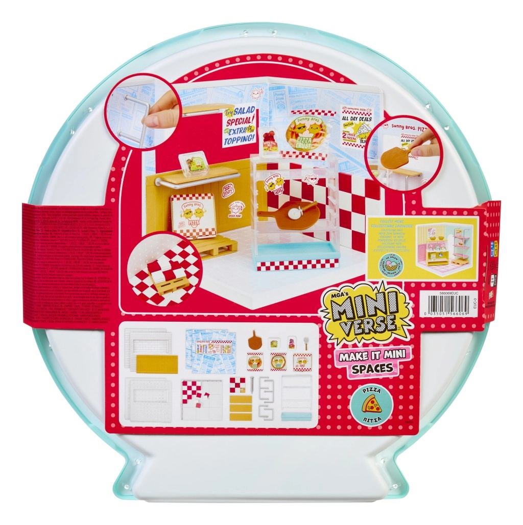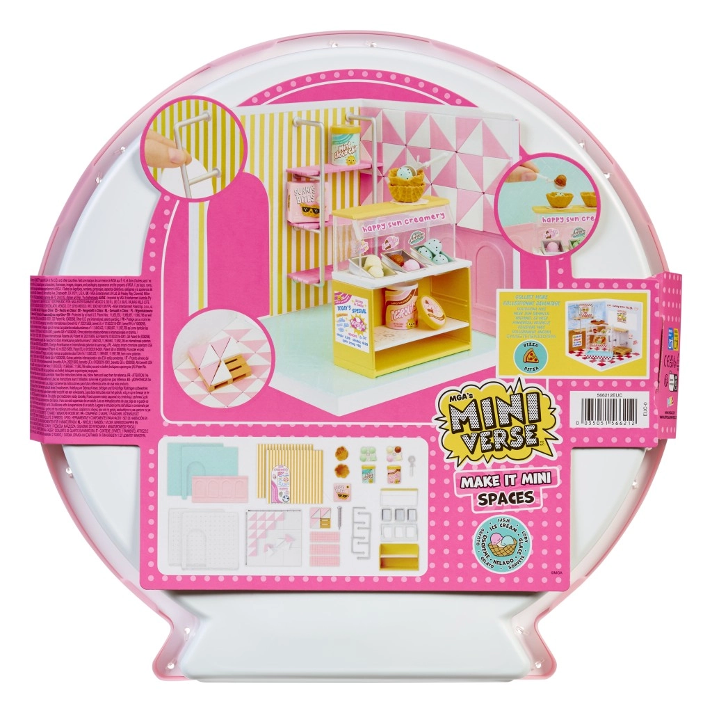 Crée ton propre mini-monde avec les sets MGA’s Miniverse Make It Mini ! Construis une pizzeria ou un glacier, expose tes miniatures et profite d’heures de jeu créatif. L’emballage comprend un sol, des murs, des carrelages/papiers peints, des étagères et des accessoires pour assembler un mini espace stylé.