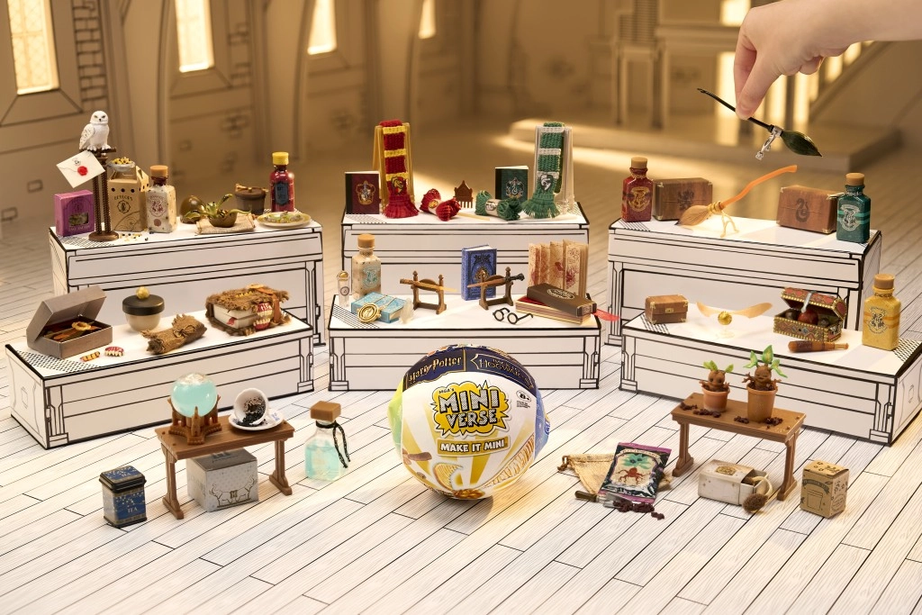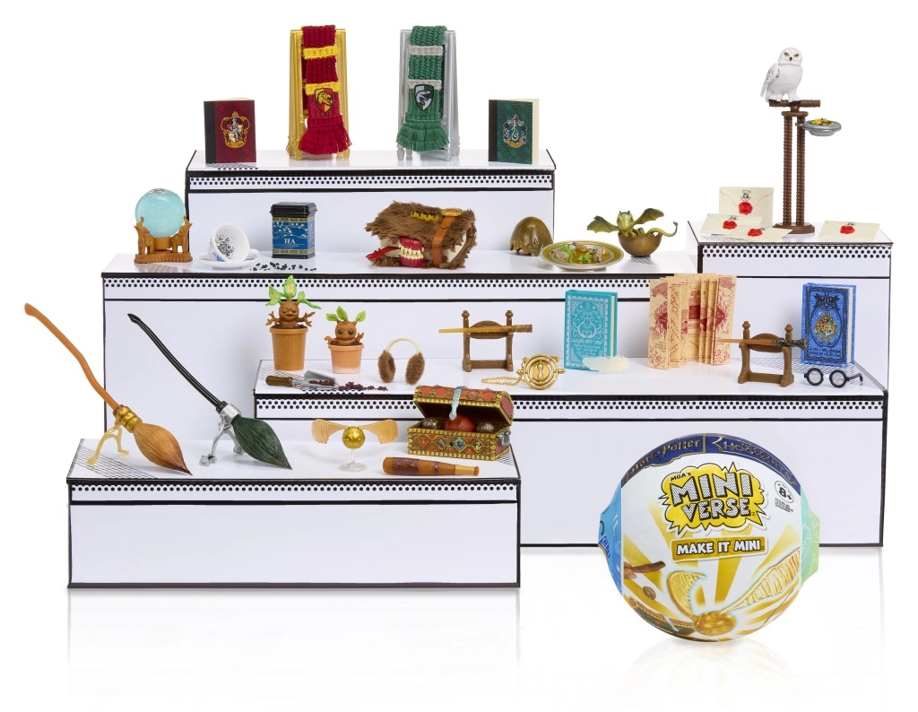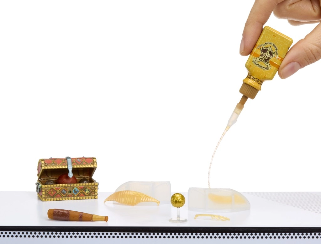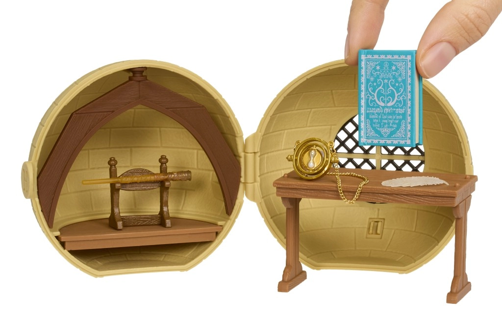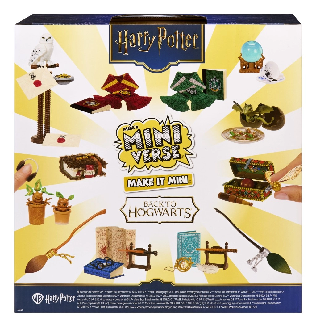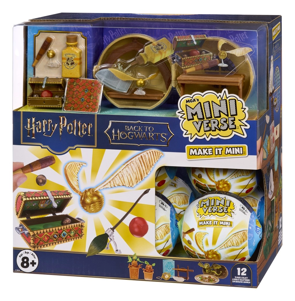 • 12 miniatures à collectionner – baguette, lunettes, écharpe, balai, courrier des chouettes, Vif d’Or, potions et plus encore.