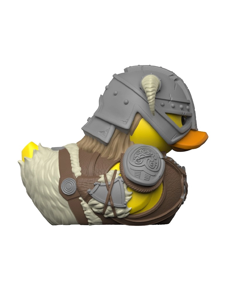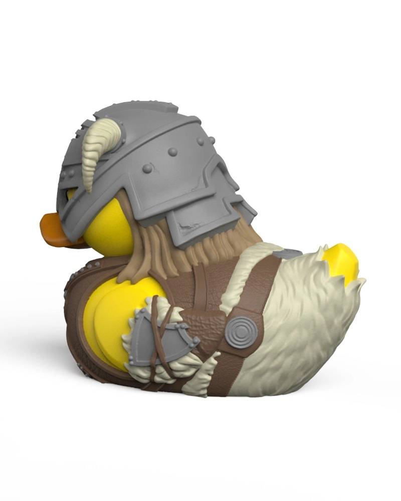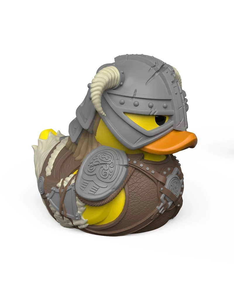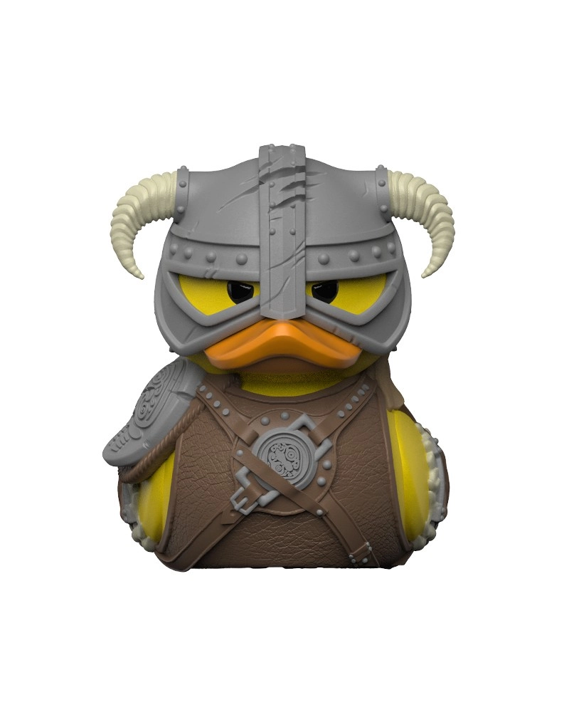 Casque cornu détaillé, armure et accessoires transposés en canard de collection. Cadeau parfait pour les fans de SKYRIM.