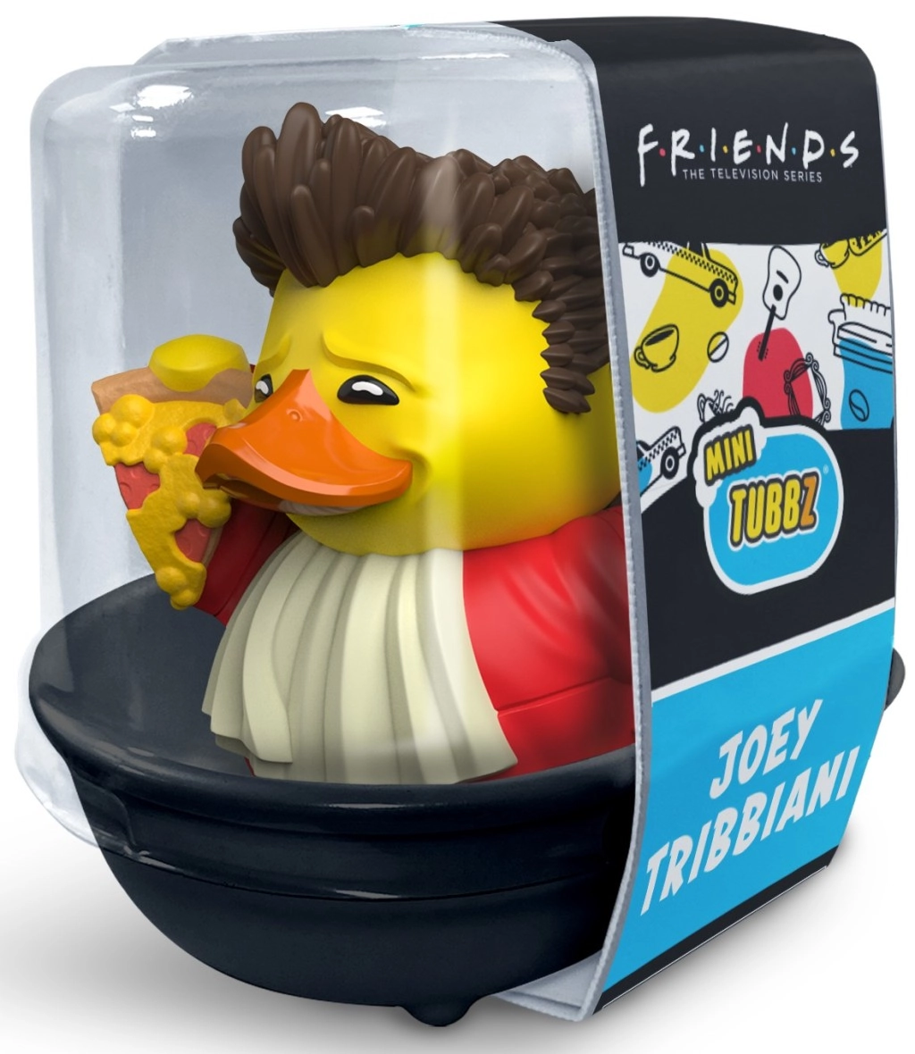 Enrichissez votre collection avec un mini canard TUBBZ stylé inspiré de la série Friends. La figurine de Joey Tribbiani en version canard iconique ne mesure que 5,5 cm, parfaite pour une étagère, un bureau ou comme cadeau pour les fans. Profitez d’un objet de collection à prix attractif et complétez votre collection.