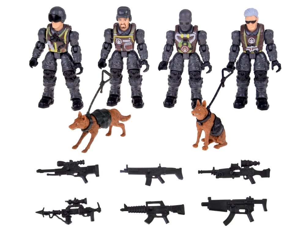 La boîte contient 6 pièces d’armement et de l’équipement tactique, grâce auxquels vous assemblez facilement une équipe pour diverses missions.