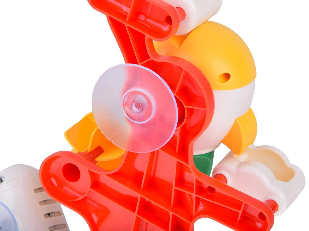 Des ventouses puissantes maintiennent le jouet fermement sur les surfaces lisses comme le carrelage ou la baignoire. Installation rapide et sans outils.