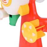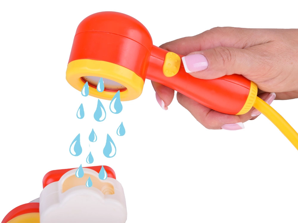 La pompe intégrée aspire l’eau et assure un débit continu vers la douchette à main. Les enfants peuvent asperger, rincer et activer les roues hydrauliques sans remplissages constants.