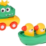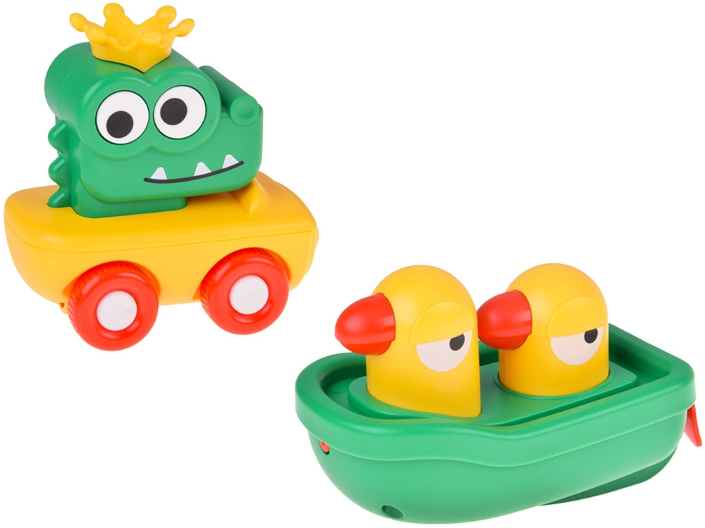 Comprend un crocodile dans une petite voiture, un bateau avec deux canetons et un gobelet verseur. Les éléments flottants stimulent l’imagination et prolongent le temps de jeu dans le bain.