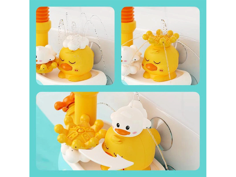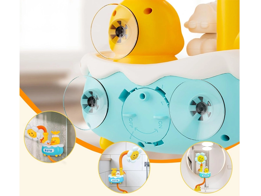 - Embouts interchangeables (petit canard, nuage, couronne) pour divers effets aquatiques