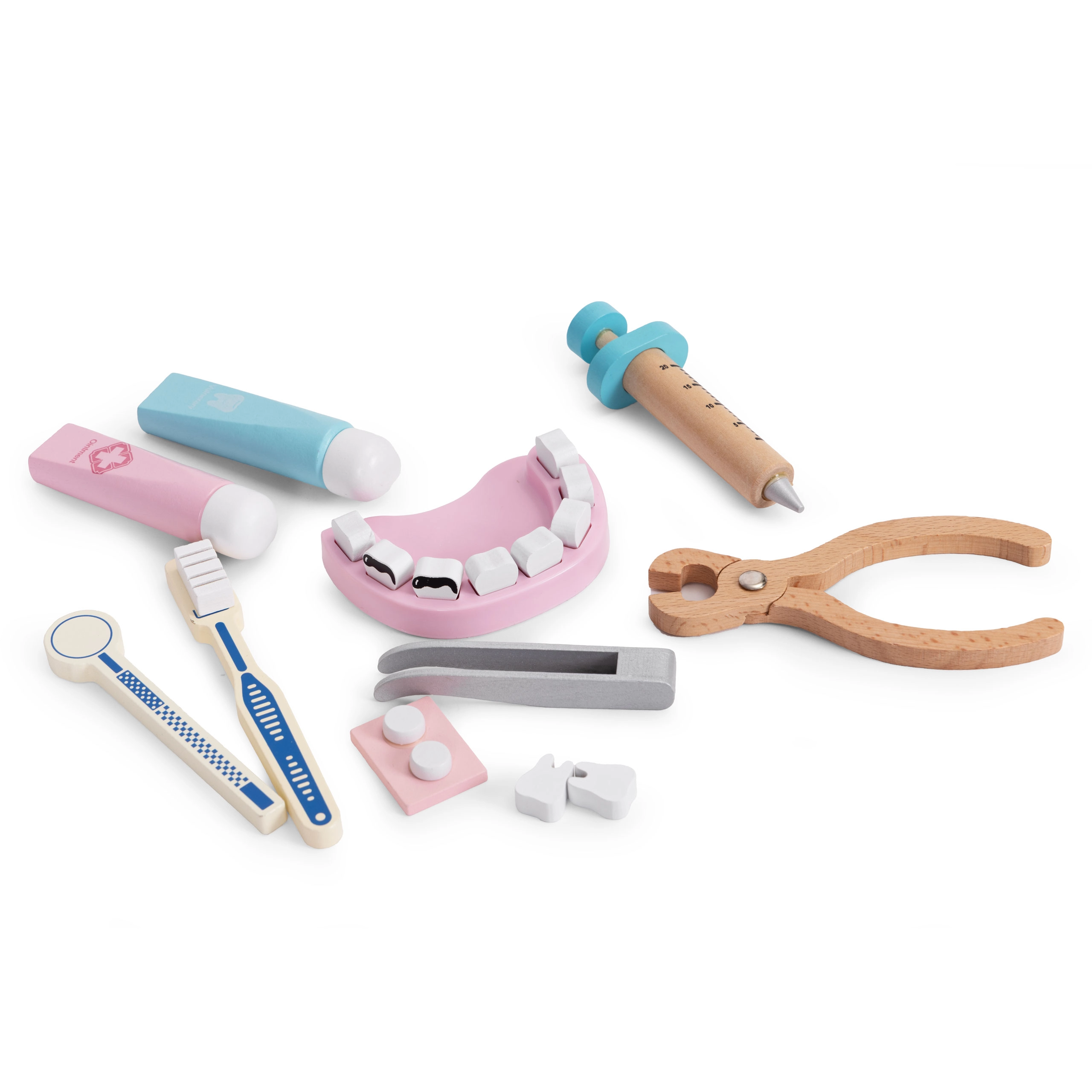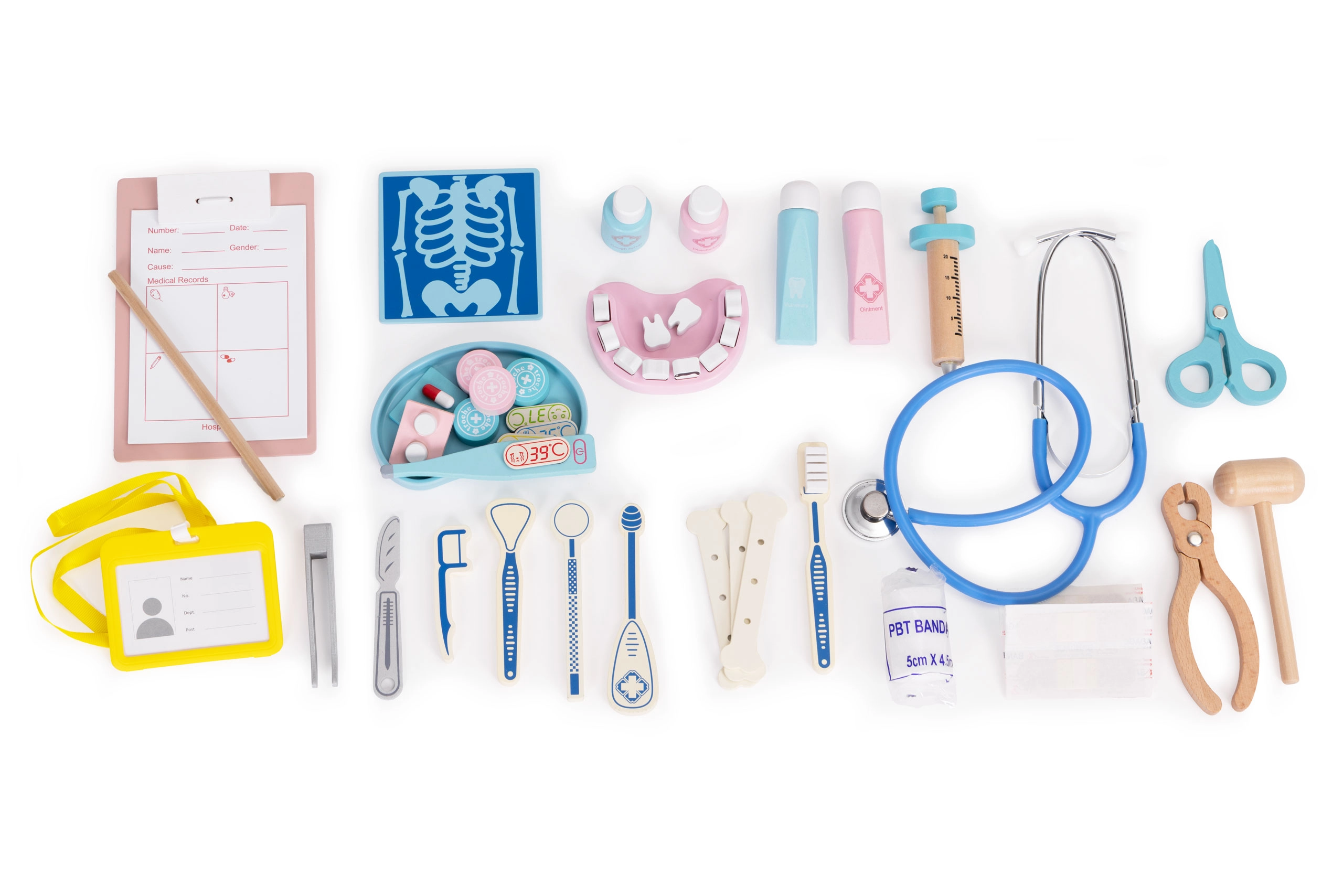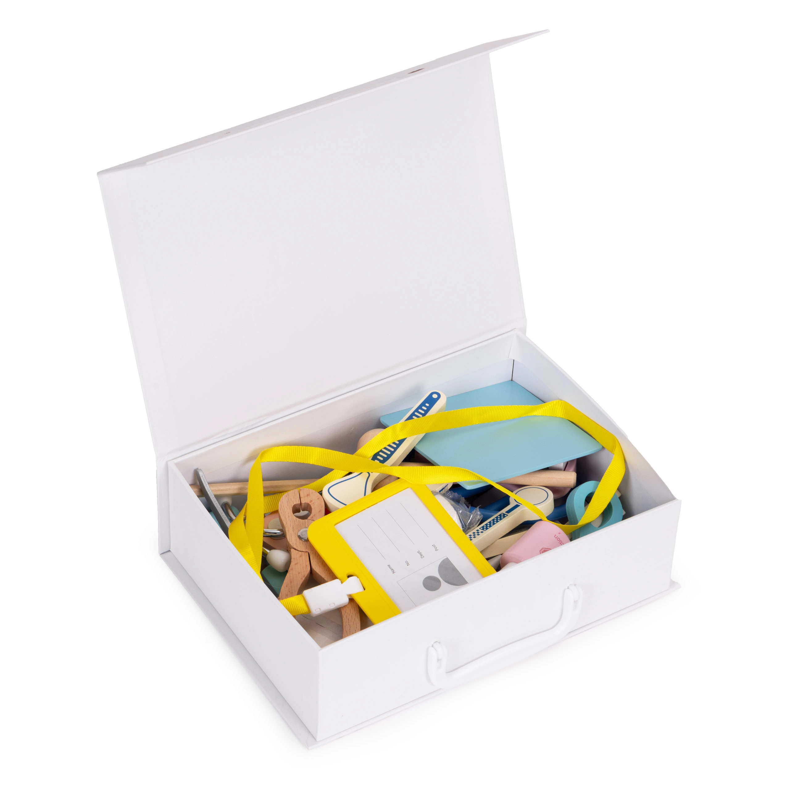 Découvrez un jeu ludique et éducatif avec la mallette médicale en bois pratique. Cet ensemble riche avec 34 accessoires réalistes favorise le jeu de rôle créatif, développe la motricité fine, la communication et aide les enfants à découvrir sans crainte les bases des soins médicaux et dentaires. Les pièces sont en bois de qualité, avec des bords lisses et conviennent aux enfants à partir de 3 ans.