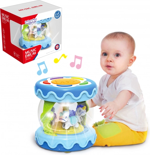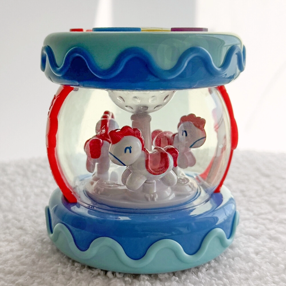 Découvrez un jouet musical polyvalent qui amuse et apaise. Le tambour WOOPIE 3‑en‑1 fonctionne comme un tambour avec un grand bouton, une boîte à musique avec chevaux tournants et un projecteur nocturne imitant les étoiles. Les lumières clignotantes et les mélodies agréables favorisent le développement de l’ouïe, de la vue et de la concentration.