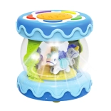 Grâce à 6 boutons fonctionnels, le jouet propose une large gamme de sons – des frappes de tambour aux mélodies percussives, ainsi que des sons d’animaux et de joyeuses comptines. Le rouleau inclus aide à apprendre à ramper et motive l’enfant à bouger. Après 60 secondes, le mode veille/standby s’active pour économiser la batterie.