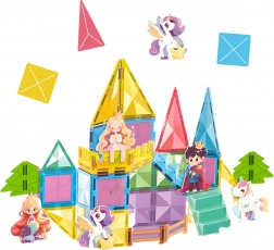 Le set est idéal pour apprendre les formes et les couleurs, développer la motricité fine et la patience. Il comprend aussi d’adorables figurines de princesse, prince et licornes pour encore plus de scénarios de jeu. Le tout est fabriqué à partir de matériaux sûrs et durables, adaptés aux enfants dès 3 ans.