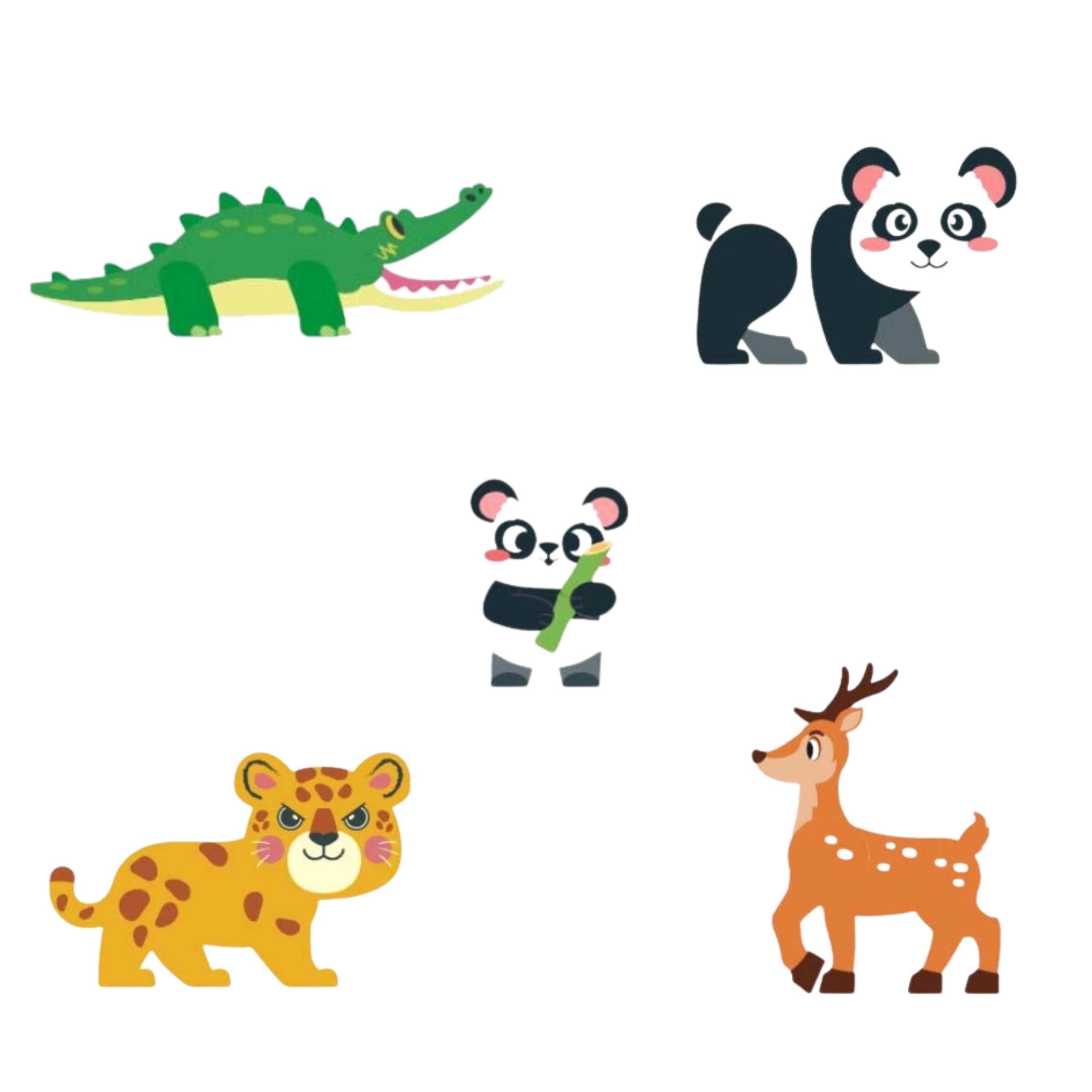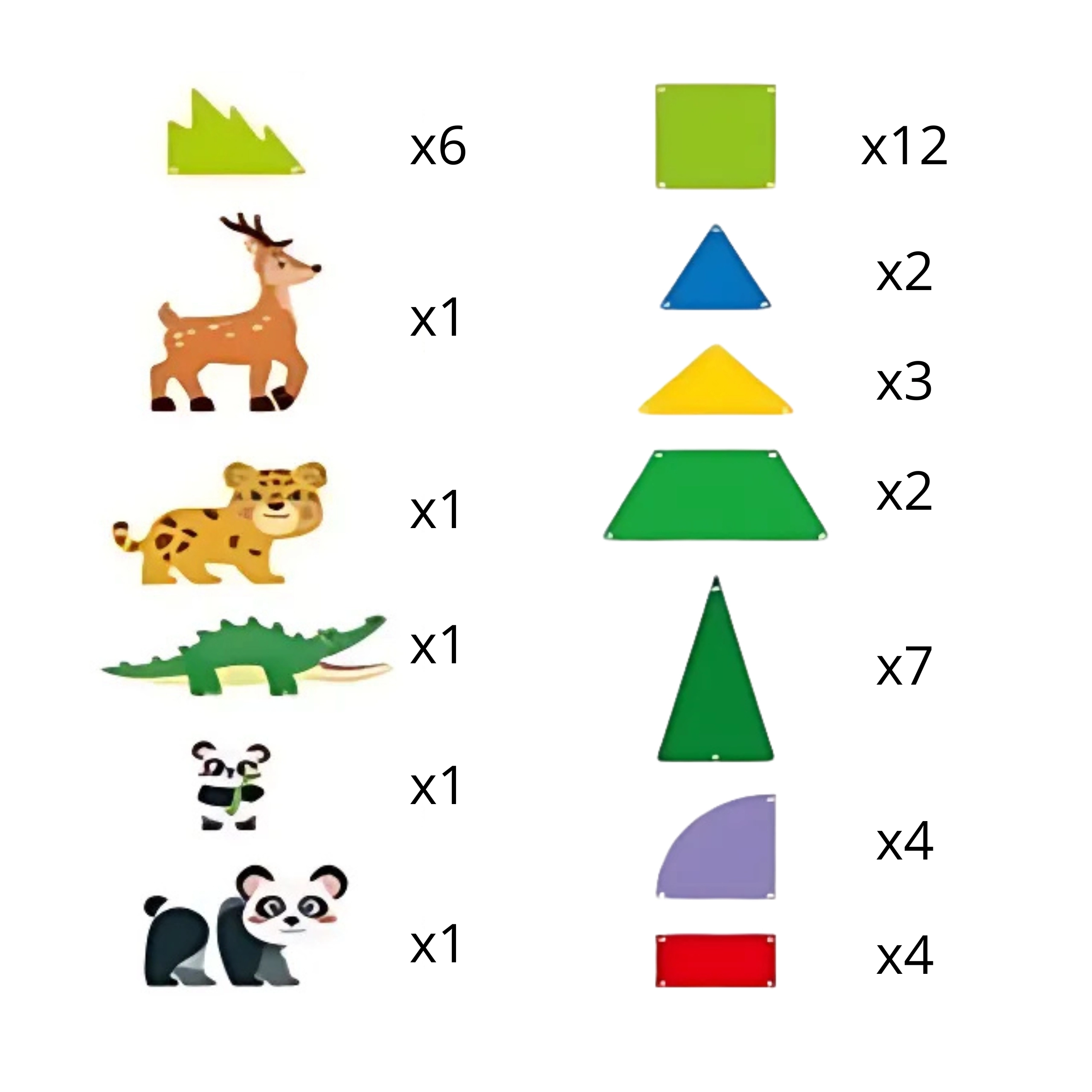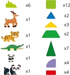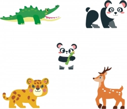 Le panda, le léopard, le cerf et le crocodile donnent vie aux constructions, stimulent le développement du langage et l’imagination lors des jeux de rôle.