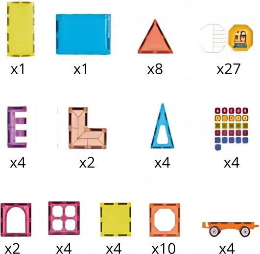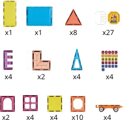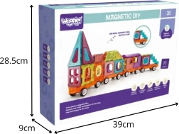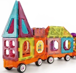 Découvrez l’univers créatif de la construction magnétique. Les éléments colorés de formes variées avec impressions se fixent rapidement et en toute sécurité, permettant aux enfants de construire immédiatement des locomotives, des wagons et des véhicules originaux. Le set encourage le jeu créatif et développe la pensée constructive.