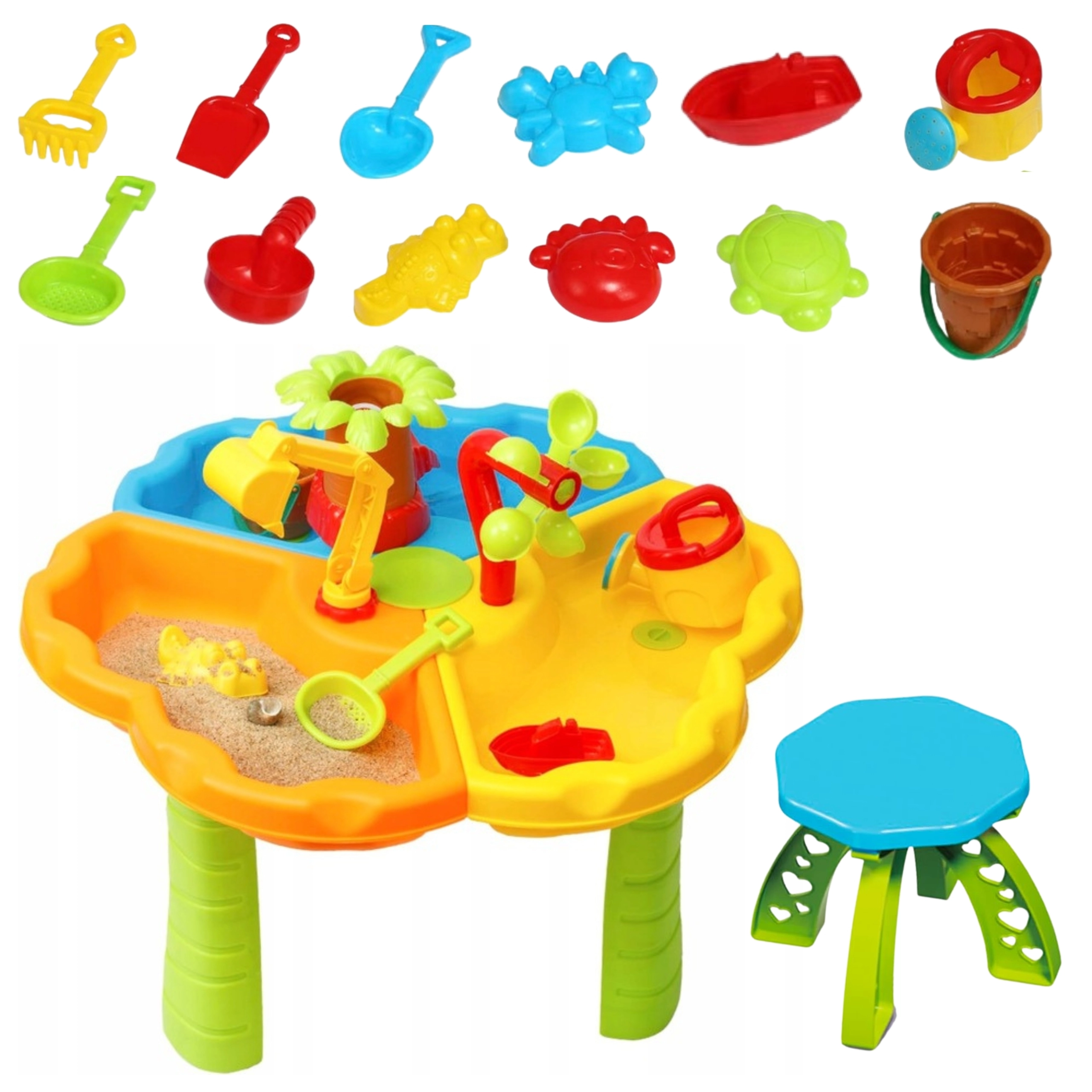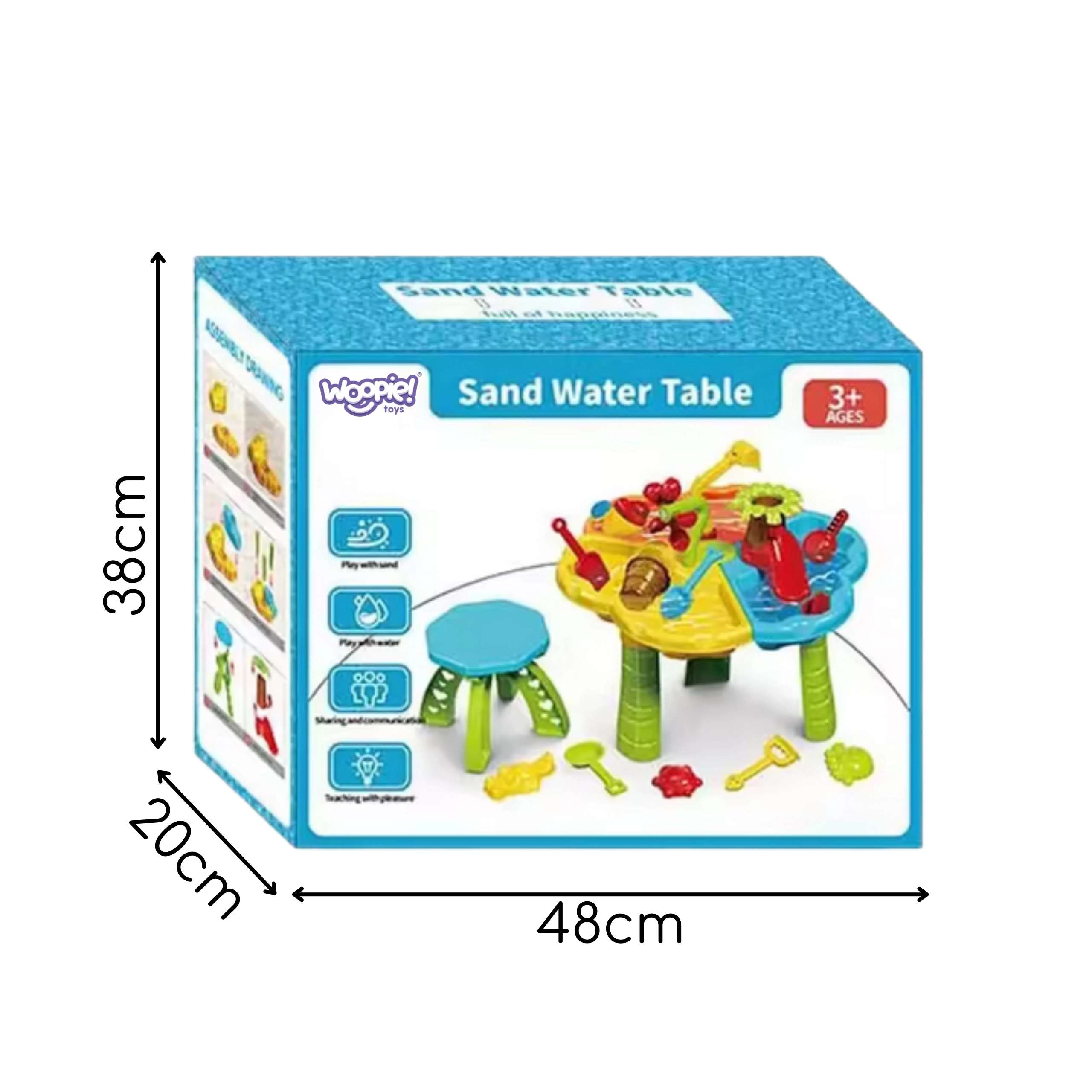 La table de jeu 2‑en‑1 pour l’eau et le sable est idéale pour le jardin, le balcon, la terrasse et la chambre d’enfant. Les bassines en trois parties permettent d’expérimenter simultanément avec l’eau, le sable et les accessoires, afin que les enfants puissent construire, transvaser, tamiser et découvrir différentes textures. La chaise ergonomique assure confort et stabilité pendant le jeu.