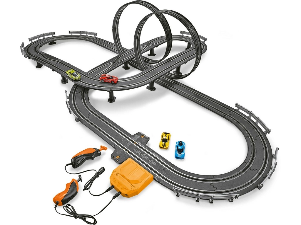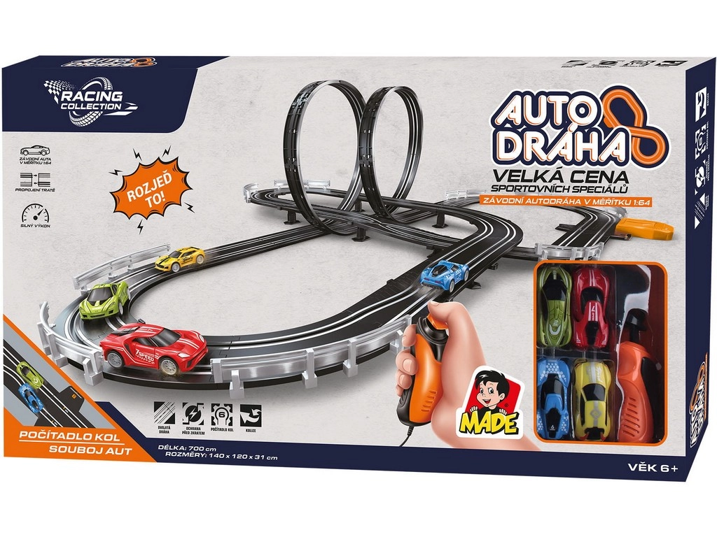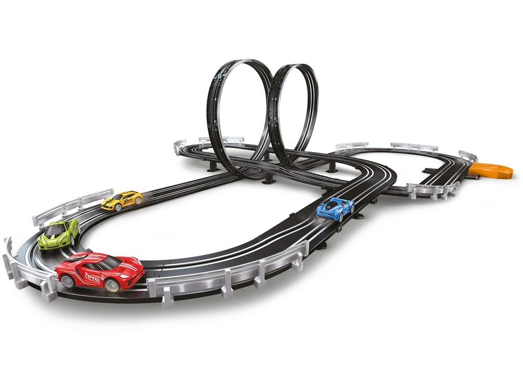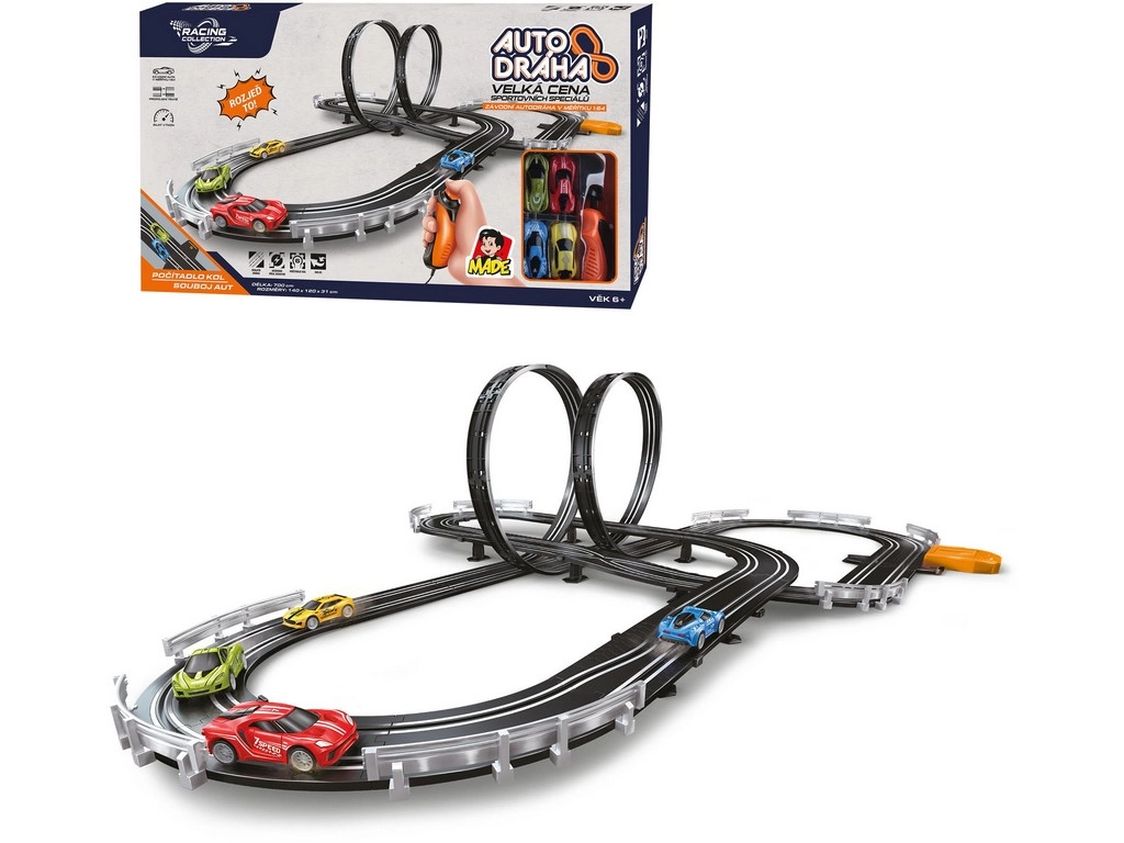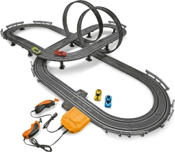 Ce circuit automobile domestique offre une expérience de course réaliste sur une surface de 140 × 120 × 31 cm (lorsqu’il est assemblé selon la notice). Avec une longueur totale de 7 mètres, deux pistes parallèles et des éléments dynamiques tels que des loopings et des virages prononcés, il mettra à l’épreuve vos talents de pilotage et vos réflexes. Grâce aux deux manettes, vous pouvez vous affronter à deux dès le départ.