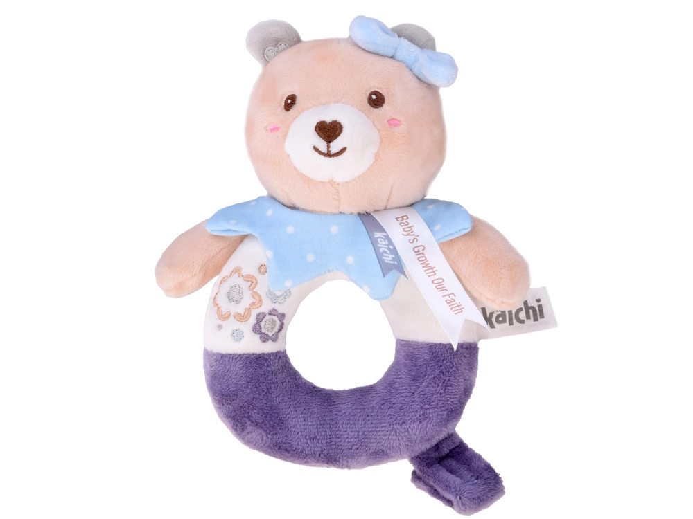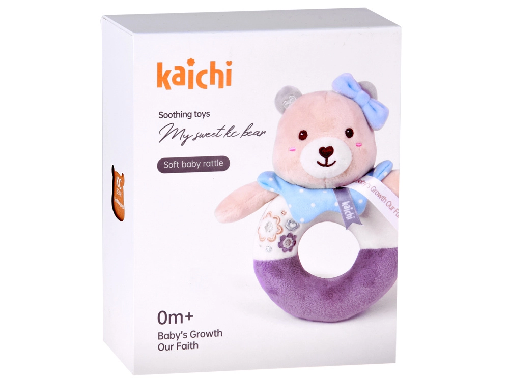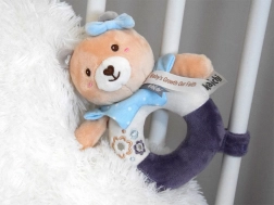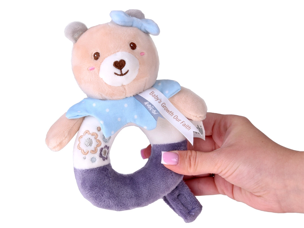 Le hochet ourson en peluche est confectionné à partir de matériaux de qualité, très doux et agréables au toucher. Sa forme en anneau facilite la préhension et la tenue, idéale pour les premières tentatives de prise en main du bébé. Les détails brodés (yeux, museau, ornements) garantissent une sécurité maximale sans petites pièces détachées.