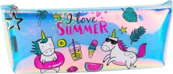 Trousse holographique pour fille avec motif estival et licorne 20 × 8 cm