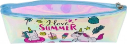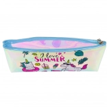 Vous cherchez une trousse qui allie design mignon et fonctionnalité? Cette trousse holographique avec l’inscription « I love SUMMER », une licorne et des icônes estivales séduit par son effet iridescent brillant et ses dimensions compactes qui économisent de la place dans le cartable. Sa structure transparente permet de retrouver rapidement tout ce dont vous avez besoin.