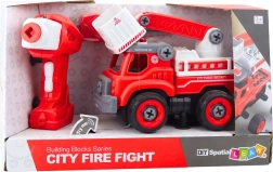 - camion de pompiers à assembler, perceuse / télécommande RC, tournevis, piles AG13