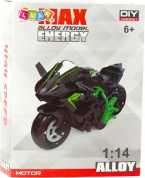 Moto métallique à assembler 1:14 vert‑orange DIY