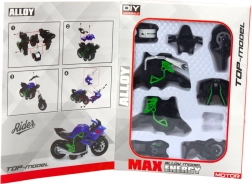 Kit de construction de moto en métal à l’échelle 1:14 qui ravira les petits constructeurs comme les passionnés de moto. Les pièces réalistes en combinaison vert‑noir forment, une fois assemblées, un modèle impressionnant. La construction développe la motricité fine, la pensée logique, la concentration et apporte la joie d’une création réalisée de ses propres mains.