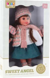 Adorable poupée SWEET ANGEL d’une hauteur de 36 cm, idéale pour tout enfant qui aime jouer à la famille et prendre soin des autres. Elle a de longs cheveux bruns, des traits du visage délicats et des yeux réalistes. Elle porte un ensemble d’hiver – bonnet, écharpe et petit cardigan, complétés par une jupe, un chemisier et des chaussettes. Parfaite pour développer l’imagination et le jeu de rôle.