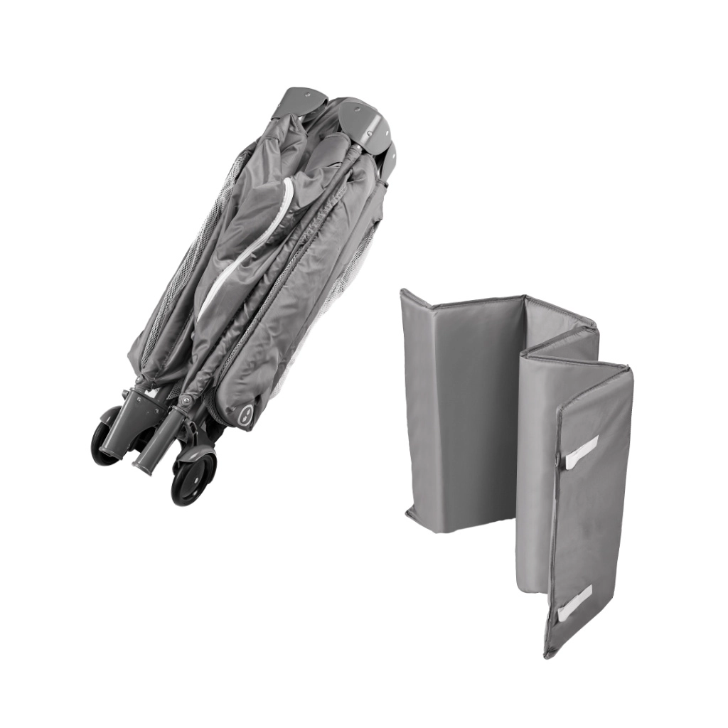 La fenêtre latérale zippée facilite l’accès pour les parents et permet à l’enfant de sortir de manière autonome. À l’intérieur, un matelas fixé par bandes auto-agrippantes stabilise le fond et améliore le confort de sommeil. Une fois plié, le lit est très compact et tient dans le coffre de la voiture ; le sac fourni avec poignées facilite le transport et le rangement.