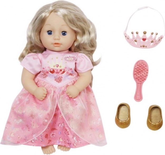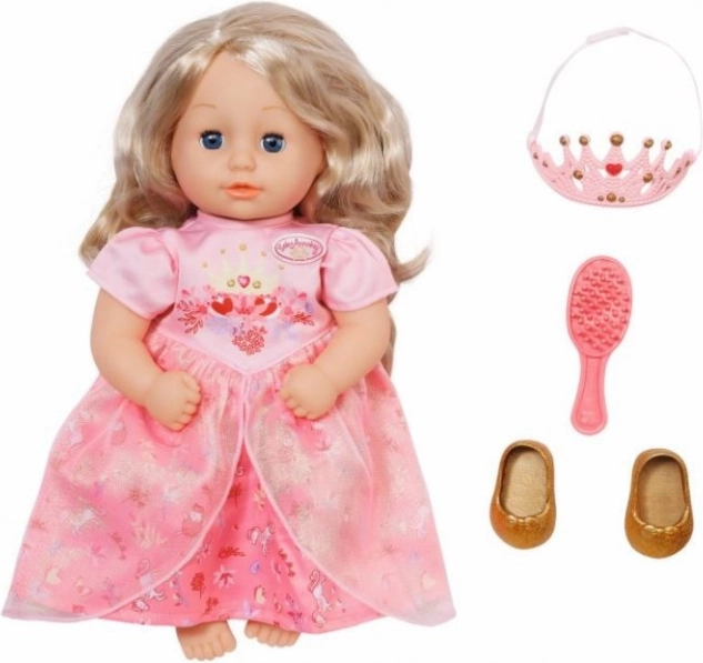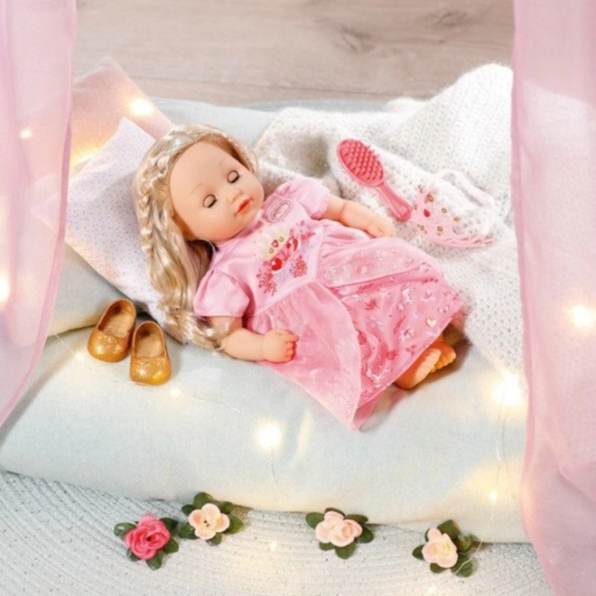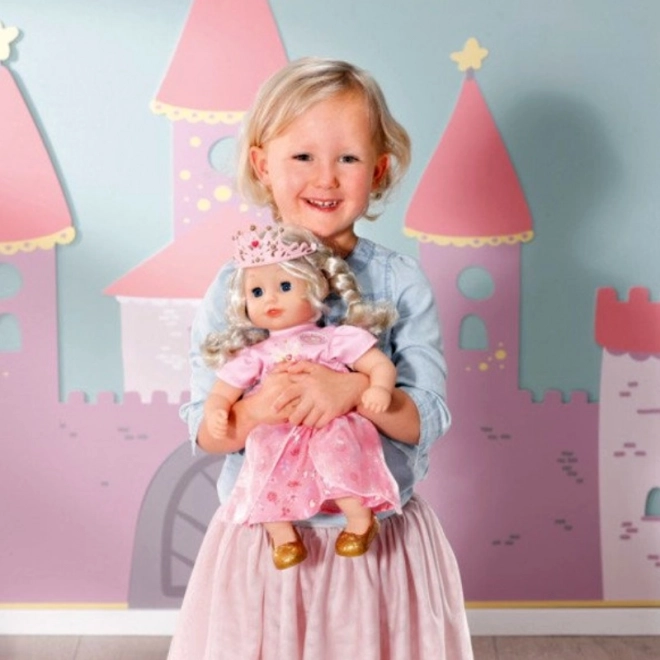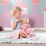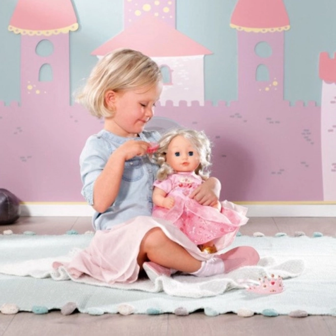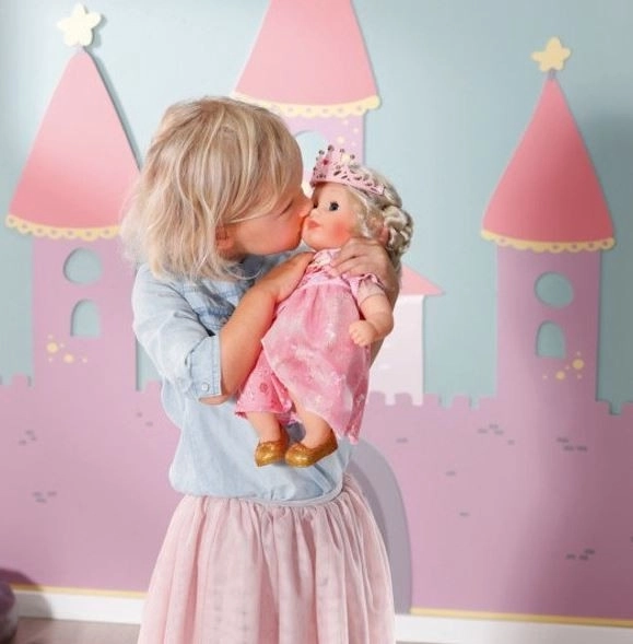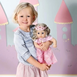 La poupée Baby Annabell Petite Douce Princesse est conçue pour les petites princesses avec une imagination débordante. Lorsque vous l'embrassez, elle répond avec des sons de baisers et ses joues rougissent. Elle ferme aussi ses brillants yeux bleus. Avec ses cheveux de qualité et sa propre brosse à cheveux, vous pouvez créer de belles coiffures. Le corps mœlleux de cette poupée est parfait pour se blottir et se reposer après une grande journée de jeux.