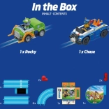 Avec les petites voitures Chase et Rocky, les enfants s’élancent sur un circuit coloré avec des hélices tournantes et le thème PAW Patrol pour encore plus de fun.