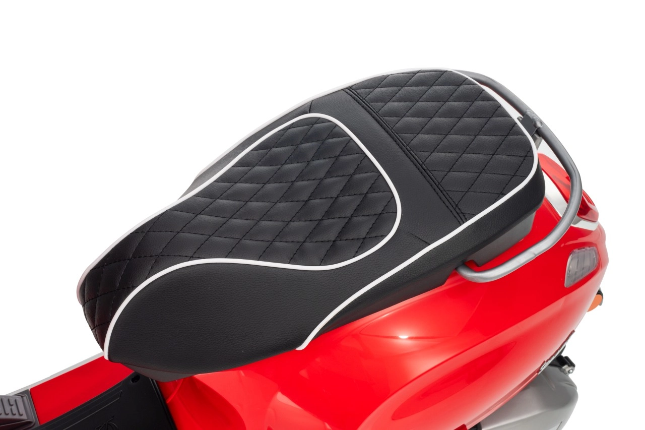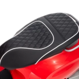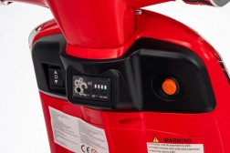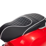 Stylish scooter électrique pour enfants au style VESPA qui ravira les petits pilotes par son look réaliste, sa selle confortable en éco-cuir et sa conduite stable grâce aux petites roues d’appoint. Il offre un moteur 2×35 W, une batterie 12 V 7 Ah, un éclairage LED avant et arrière et de riches fonctions audio (MP3, Bluetooth, AUX) avec indicateur de charge de la batterie.