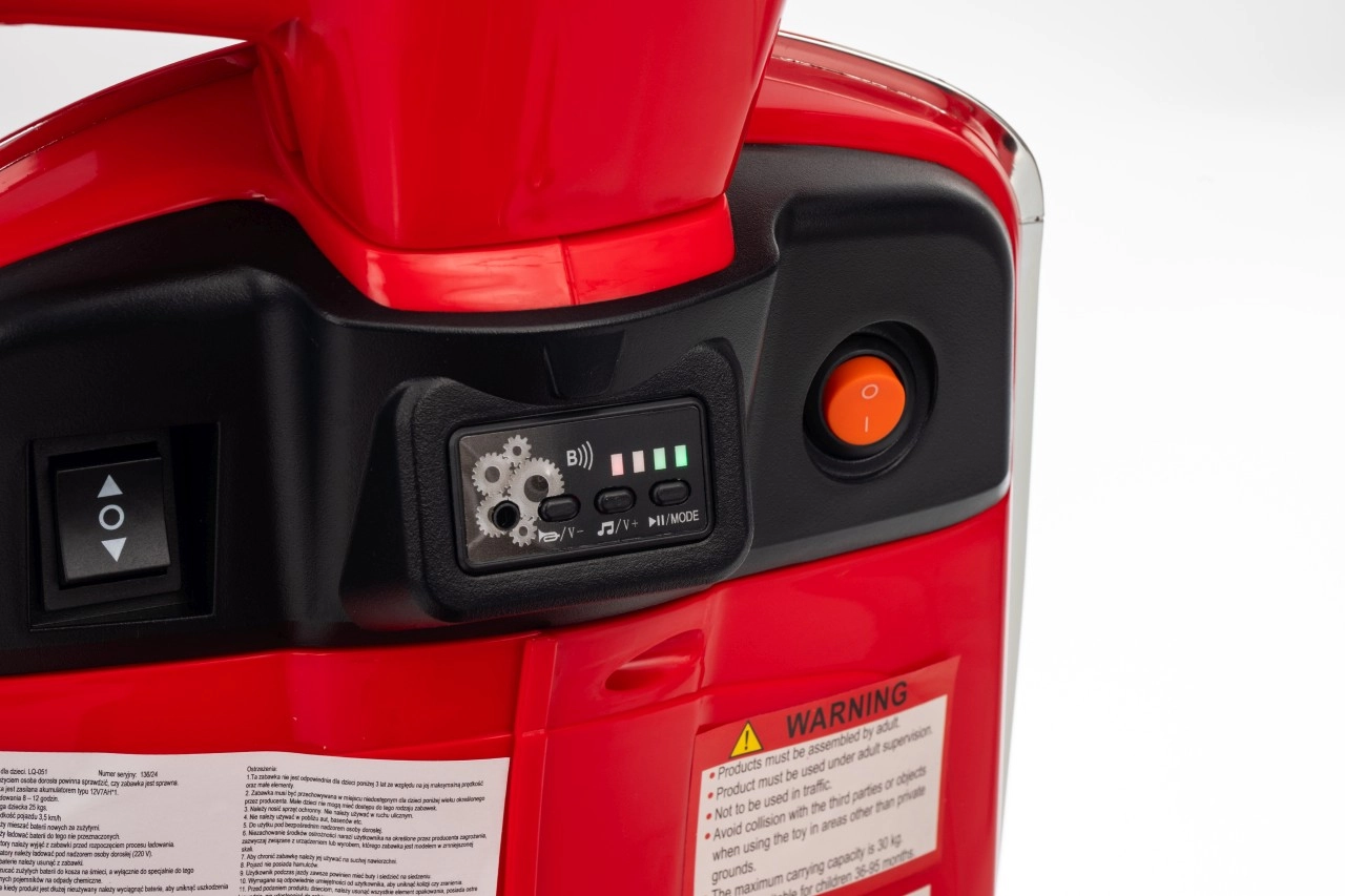 Les petits pilotes s’amusent avec le panneau audio intégré – écoutez les chansons préférées via Bluetooth, MP3 ou AUX. Des boutons sonores et un klaxon figurent sur le guidon, et la selle en éco-cuir assure le confort même lors de trajets plus longs. L’indicateur de charge de la batterie vous informe en plus quand il est temps de recharger.