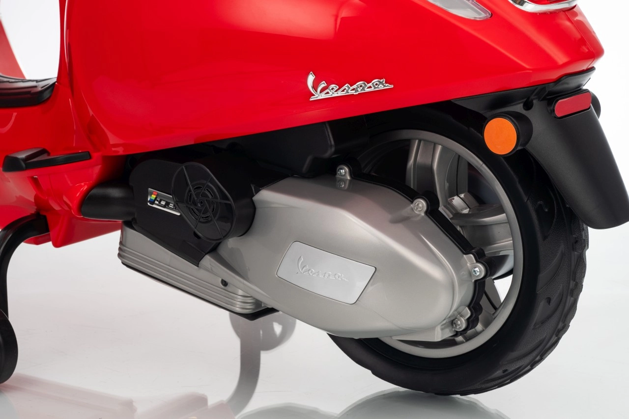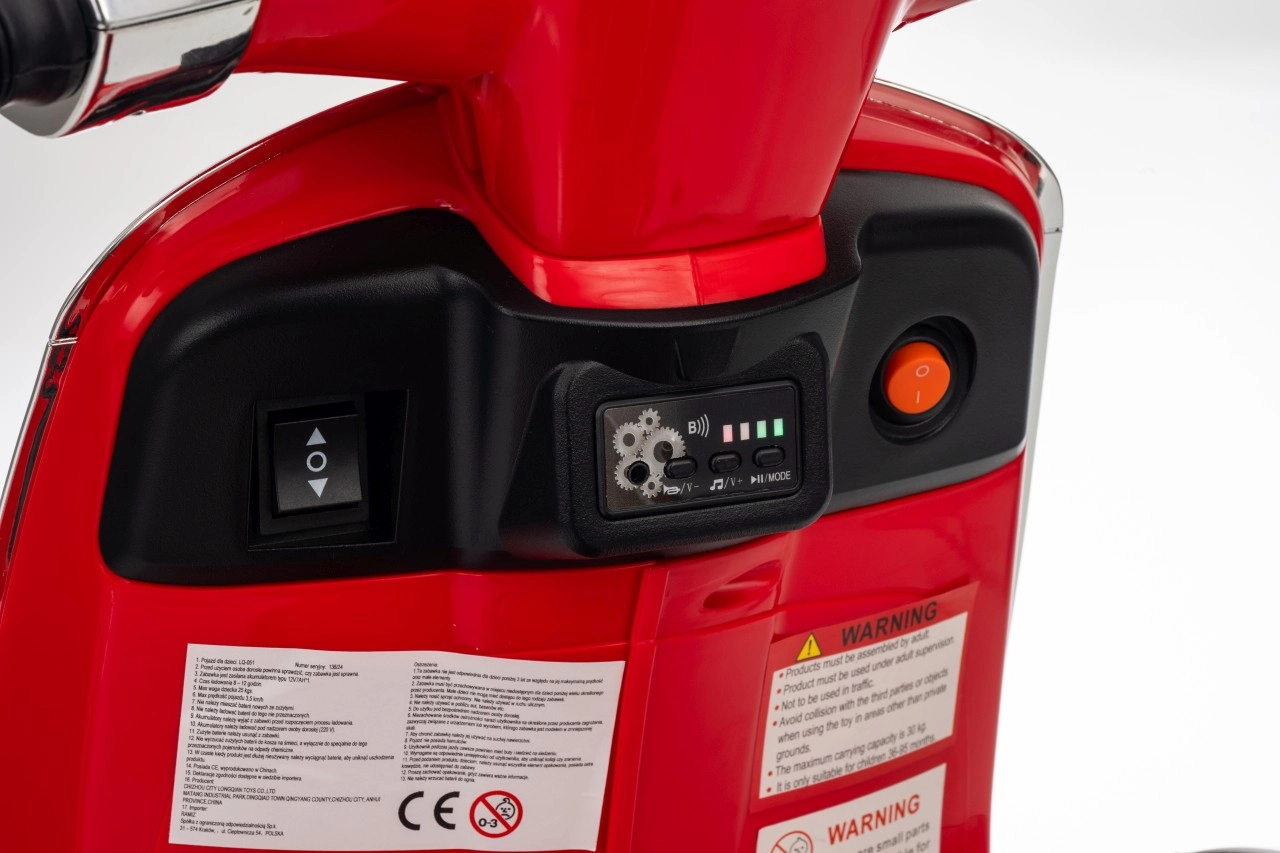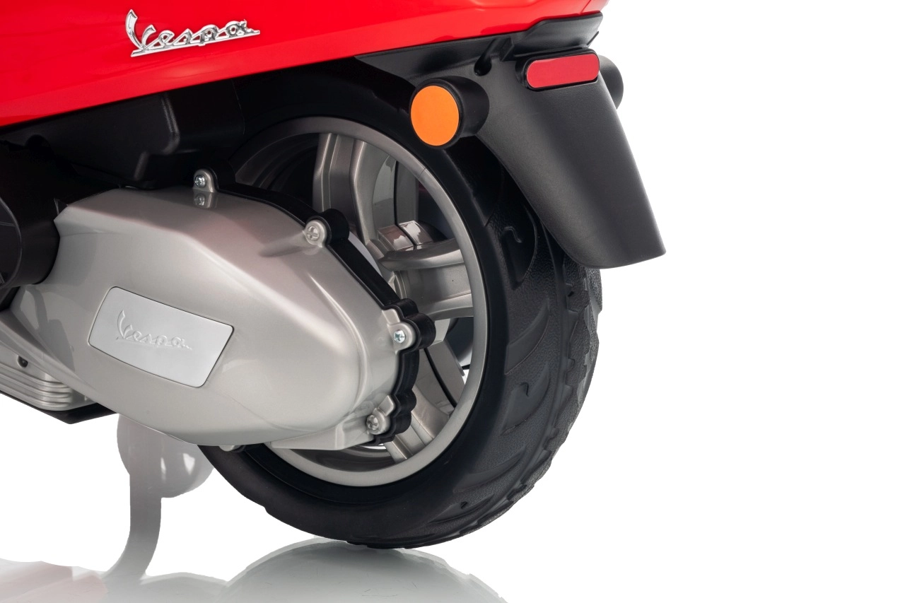 Le scooter pour enfants VESPA ROMA en rouge offre une expérience de conduite authentique dans une conception sûre pour les petits. Grâce au démarrage en douceur, à la marche avant et arrière et aux roues EVA de qualité, la conduite est confortable et silencieuse. Les feux LED pratiques améliorent la visibilité et confèrent au véhicule un aspect réaliste.
