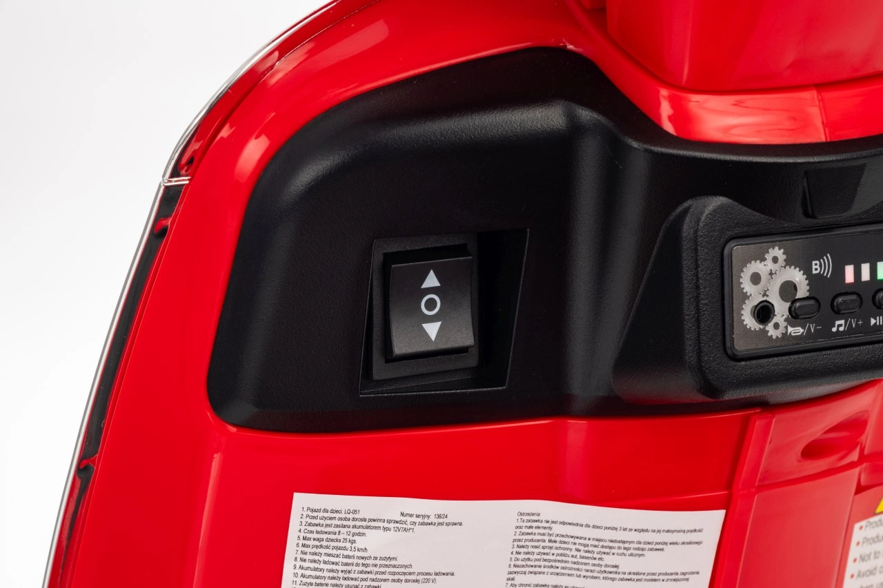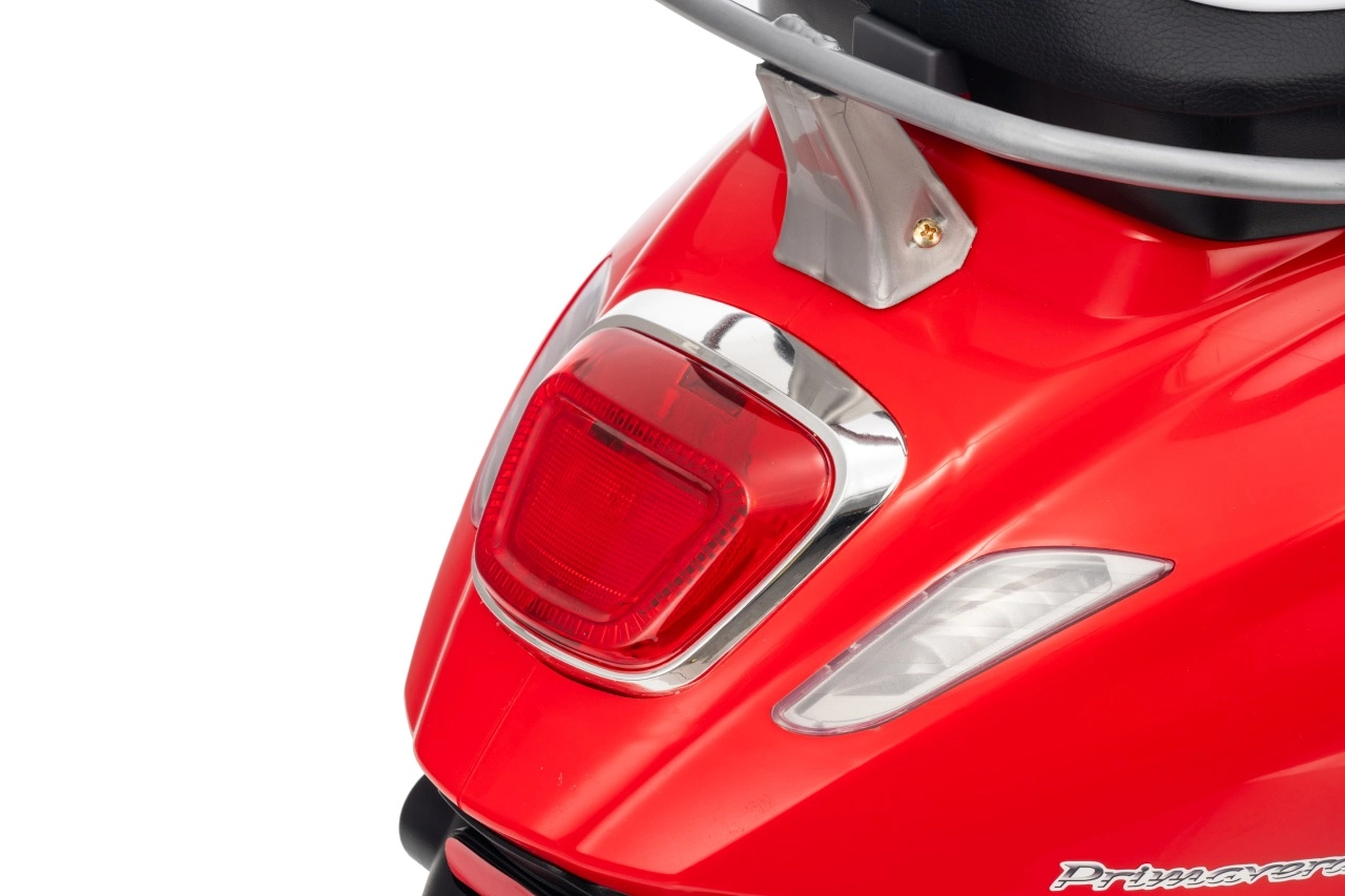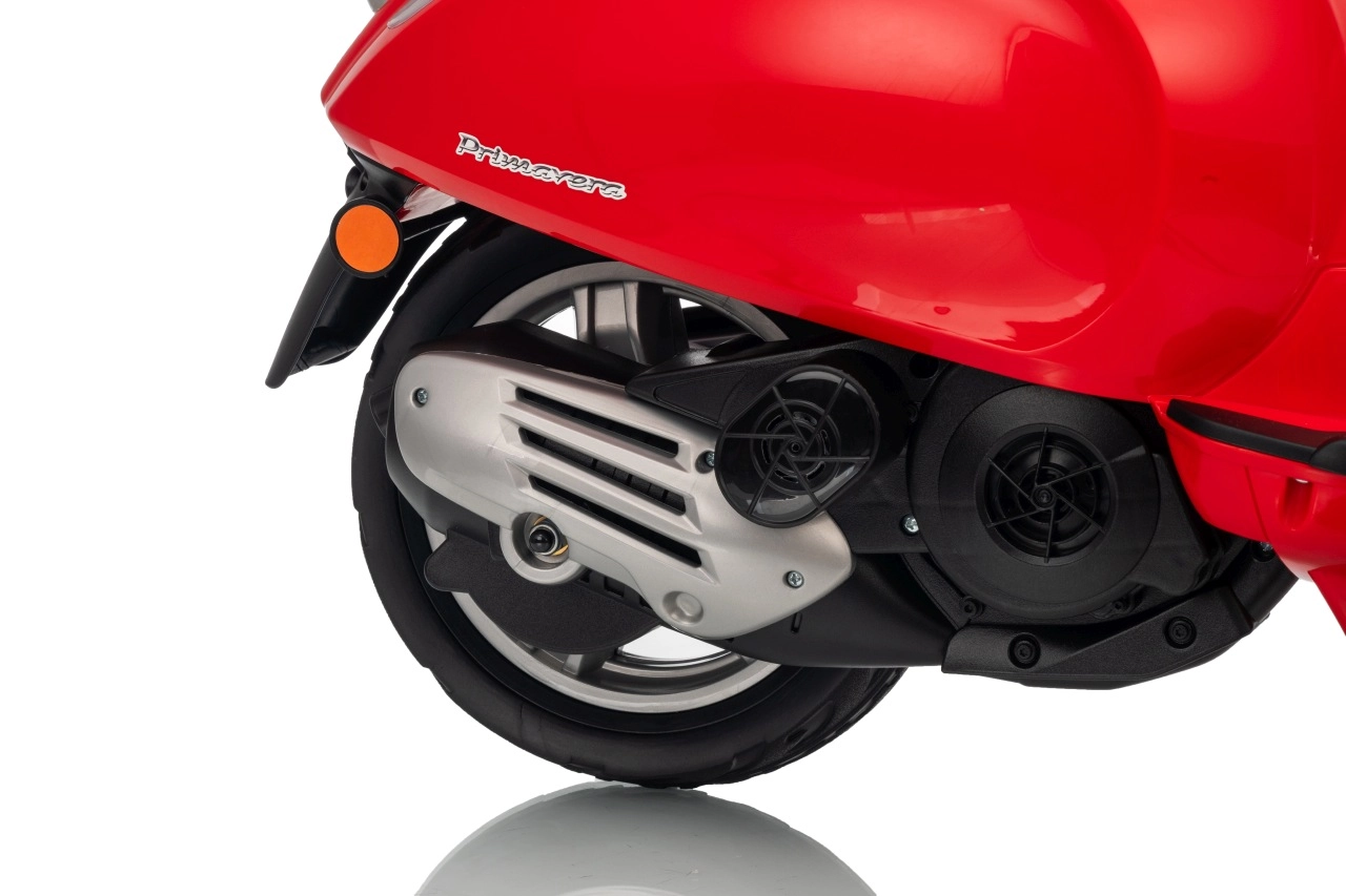 Le scooter pour enfants VESPA ROMA en rouge offre une expérience de conduite authentique dans une conception sûre pour les petits. Grâce au démarrage en douceur, à la marche avant et arrière et aux roues EVA de qualité, la conduite est confortable et silencieuse. Les feux LED pratiques améliorent la visibilité et confèrent au véhicule un aspect réaliste.