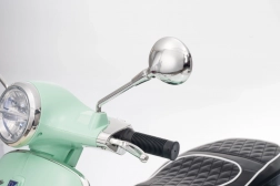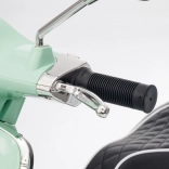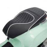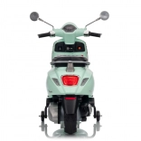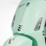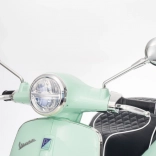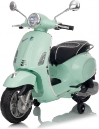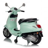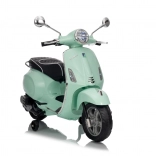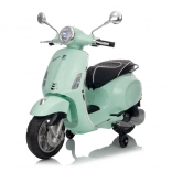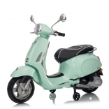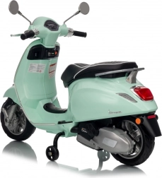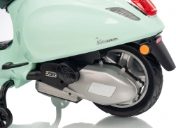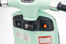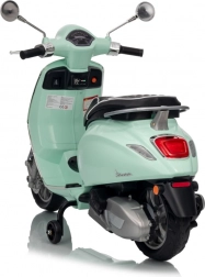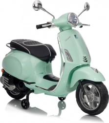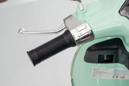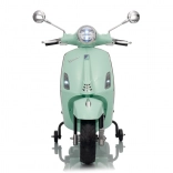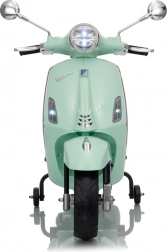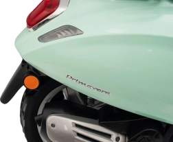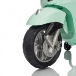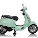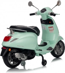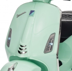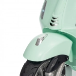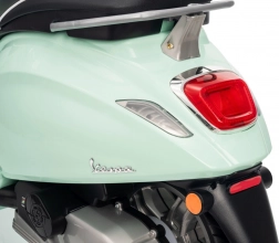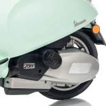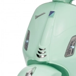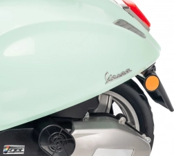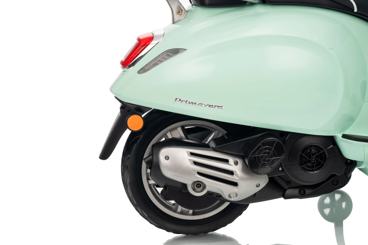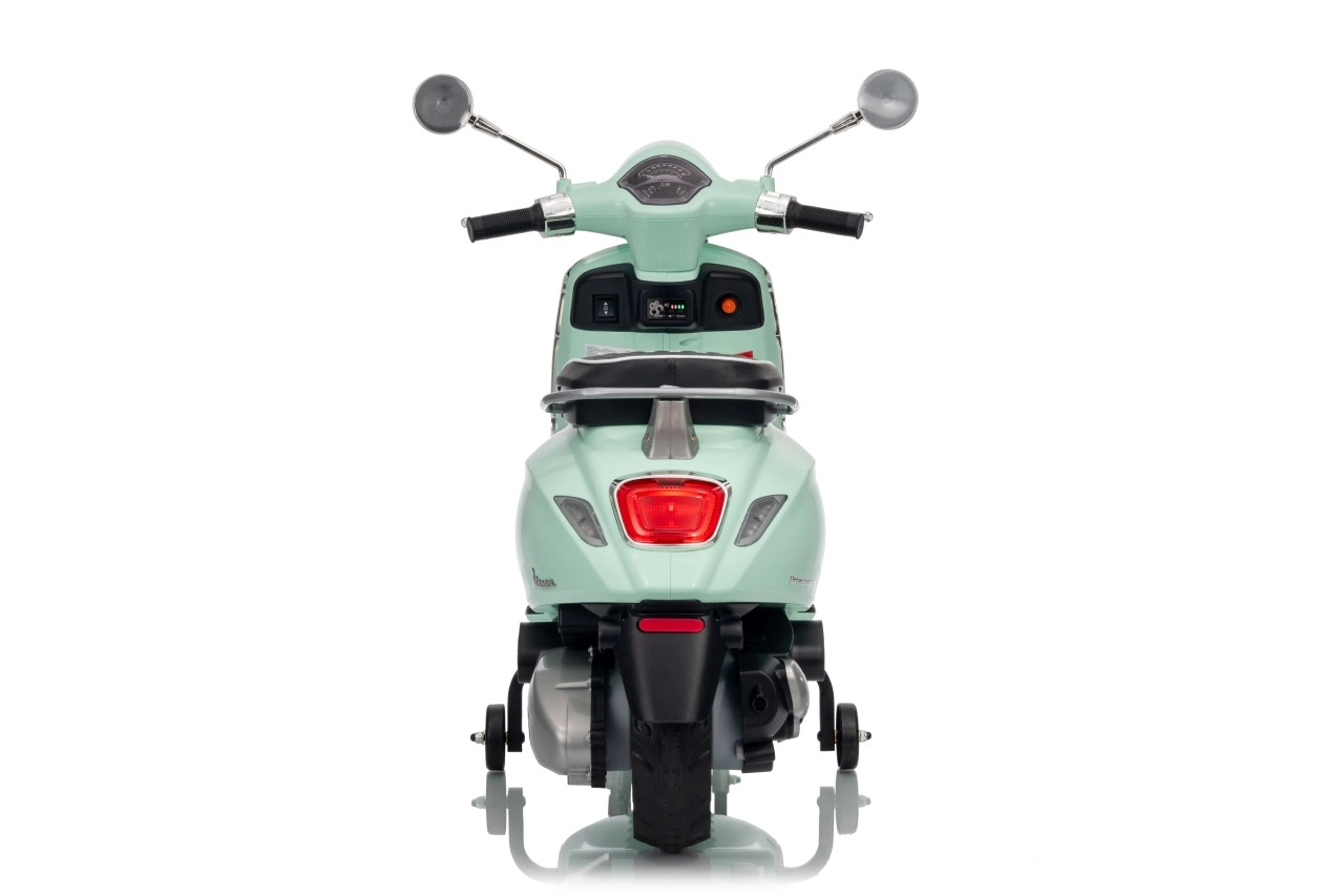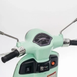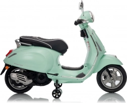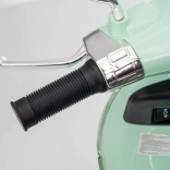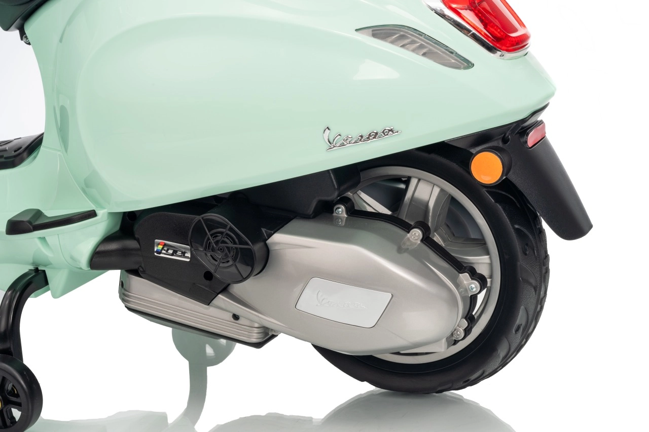 La trottinette électrique pour enfants au style élégant VESPA Roma en vert menthe séduit par son design réaliste, ses deux moteurs 2×35 W, sa batterie 12 V 7 Ah puissante et ses roulettes de stabilisation pour une conduite en toute sécurité. Le confort est assuré par une selle en cuir éco, des roues EVA silencieuses et des feux LED avant et arrière. Elle dispose aussi du Bluetooth/MP3/AUX, d’effets sonores et d’un klaxon au guidon, ainsi que d’un indicateur de charge.
