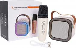 Ensemble karaoké compact pour enfants dès 3 ans et adultes, combinant un microphone sans fil et un mini haut-parleur performant au son clair et puissant, avec éclairage RGB et Bluetooth 5.0 stable. Grâce à la réduction de bruit DSP, à la prise en charge MP3/WMA/WAV et aux entrées dont carte TF et USB‑C, il est idéal pour chanter, faire des annonces et s’amuser en déplacement.