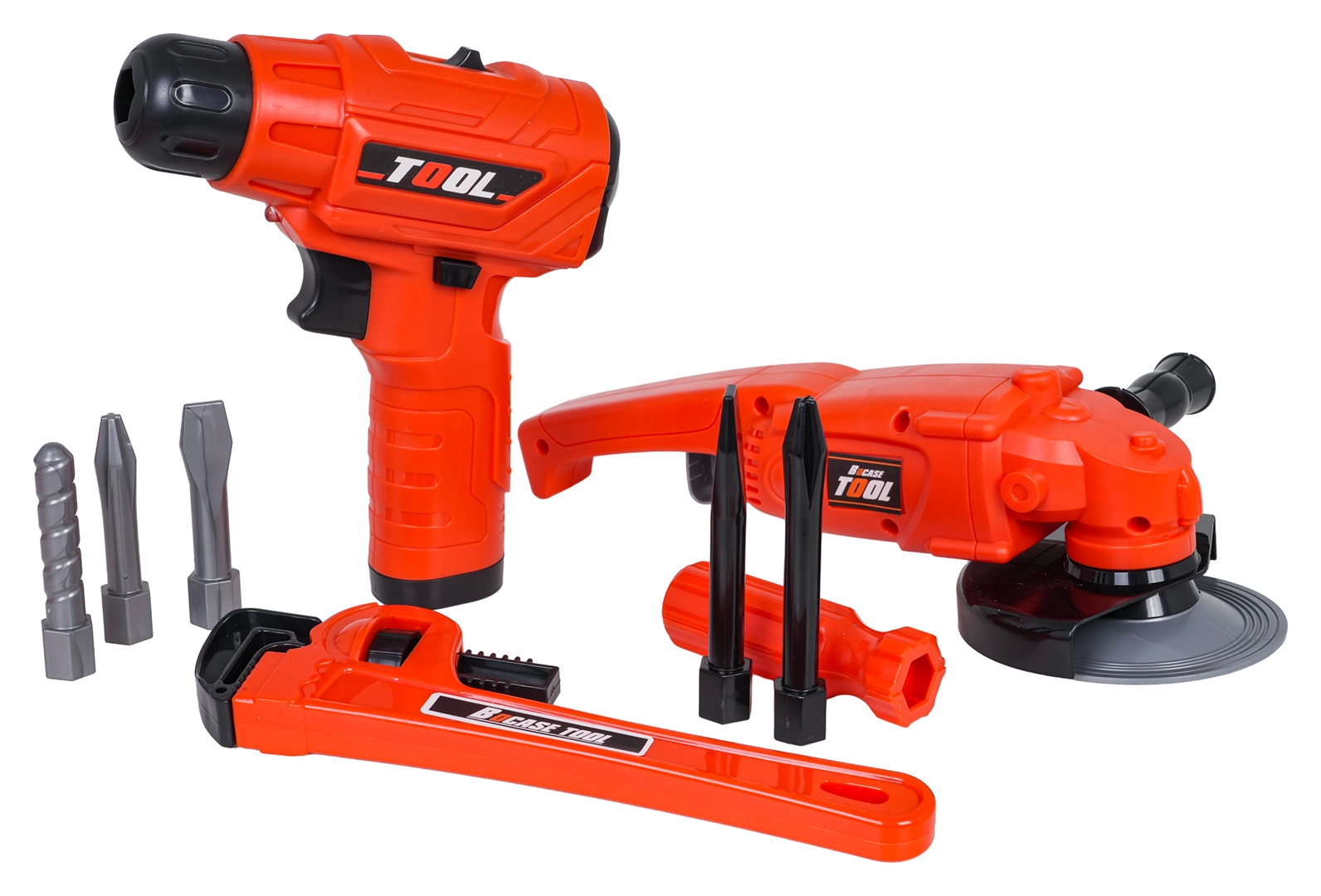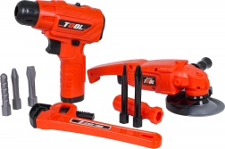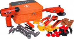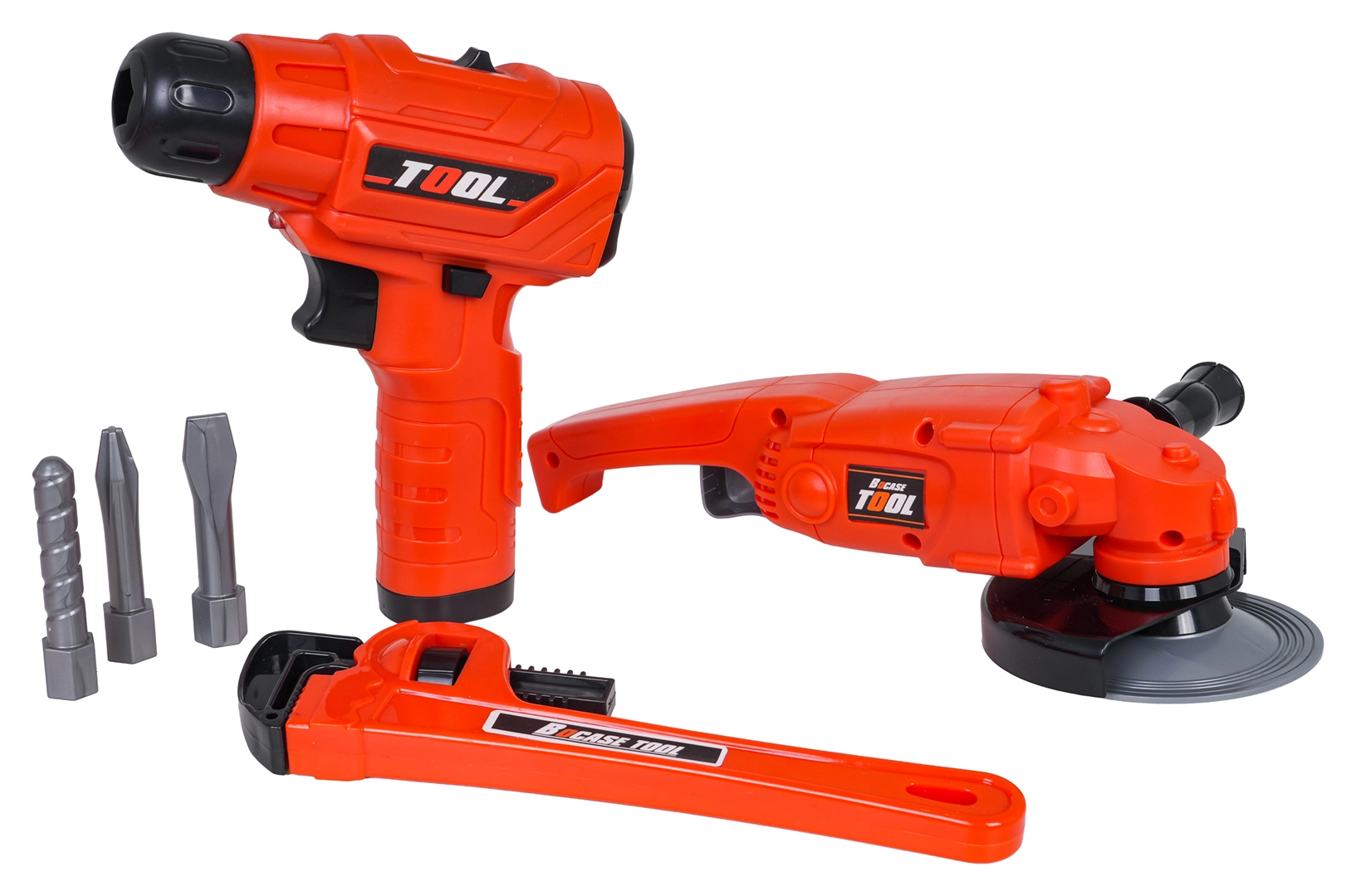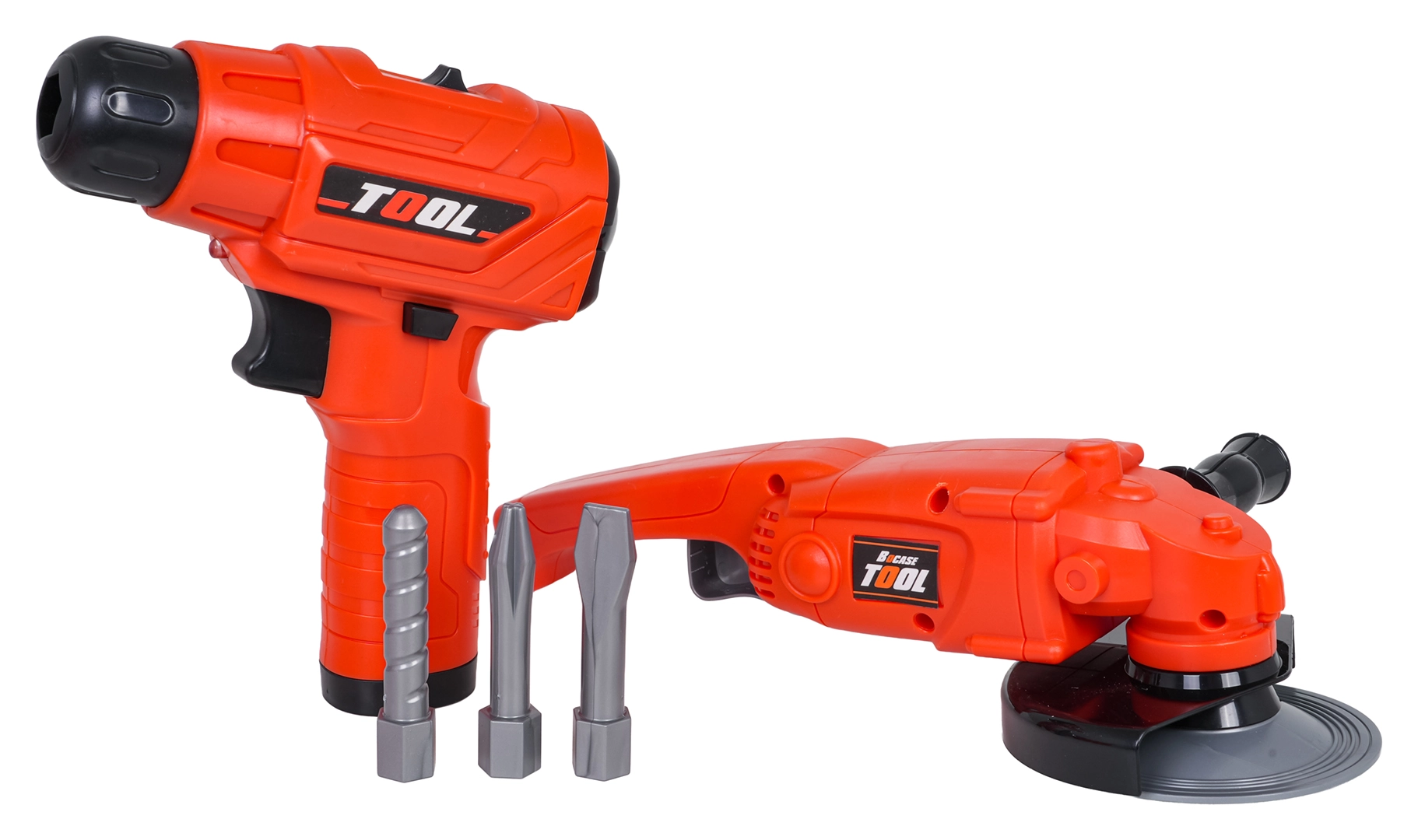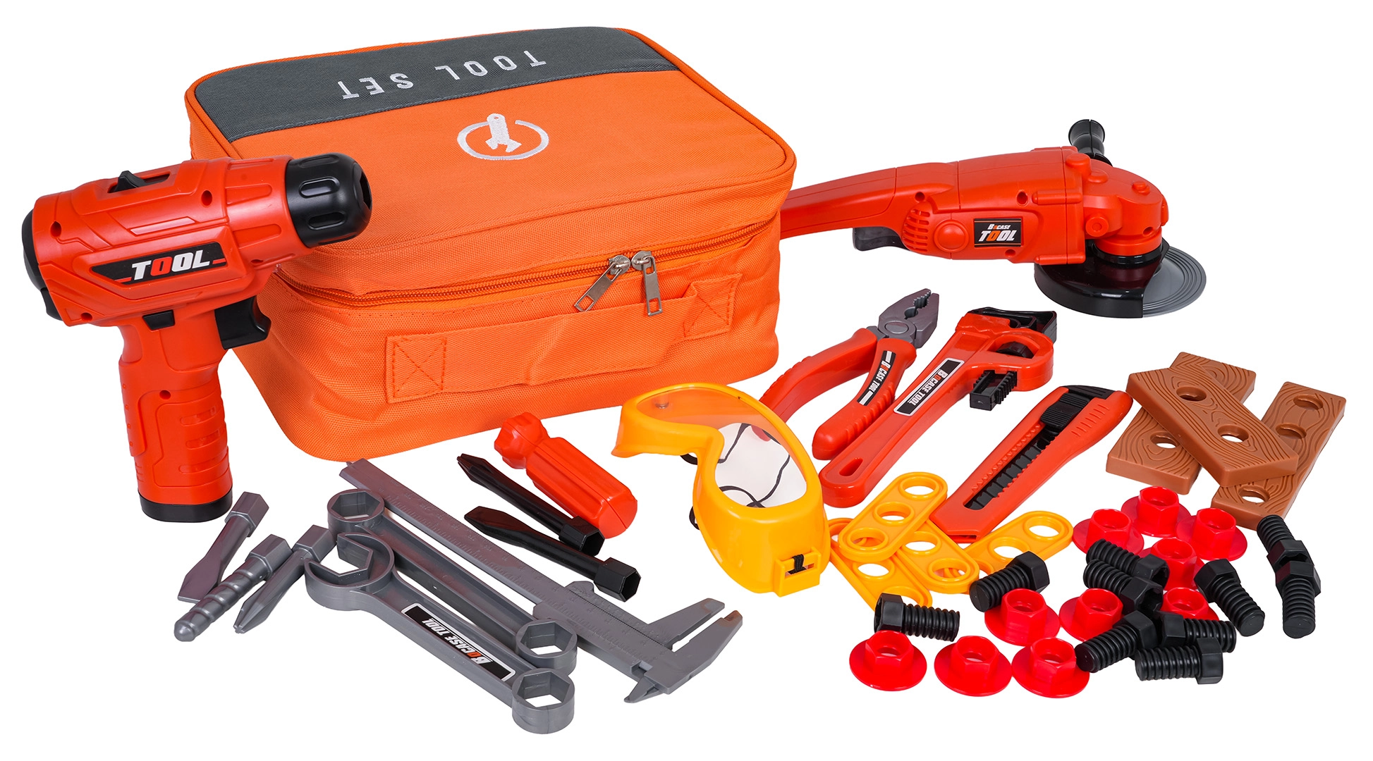 Set d’outils pour enfants richement équipé avec sac pratique offrant 42 pièces pour construire de façon créative et apprendre en jouant. Comprend une perceuse/visseuse à piles avec effets lumineux et sonores, une meuleuse d’angle à disque manuel, des clés, une pince, des lunettes de protection, des vis, des écrous et des embouts interchangeables. Fabriqué en plastique de qualité, sûr pour les enfants dès 3 ans.