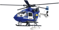 Poste de pilotage avec verrière transparente, patins d’atterrissage et marquages de police bien visibles. Le plastique de qualité résiste même au jeu intensif des enfants.