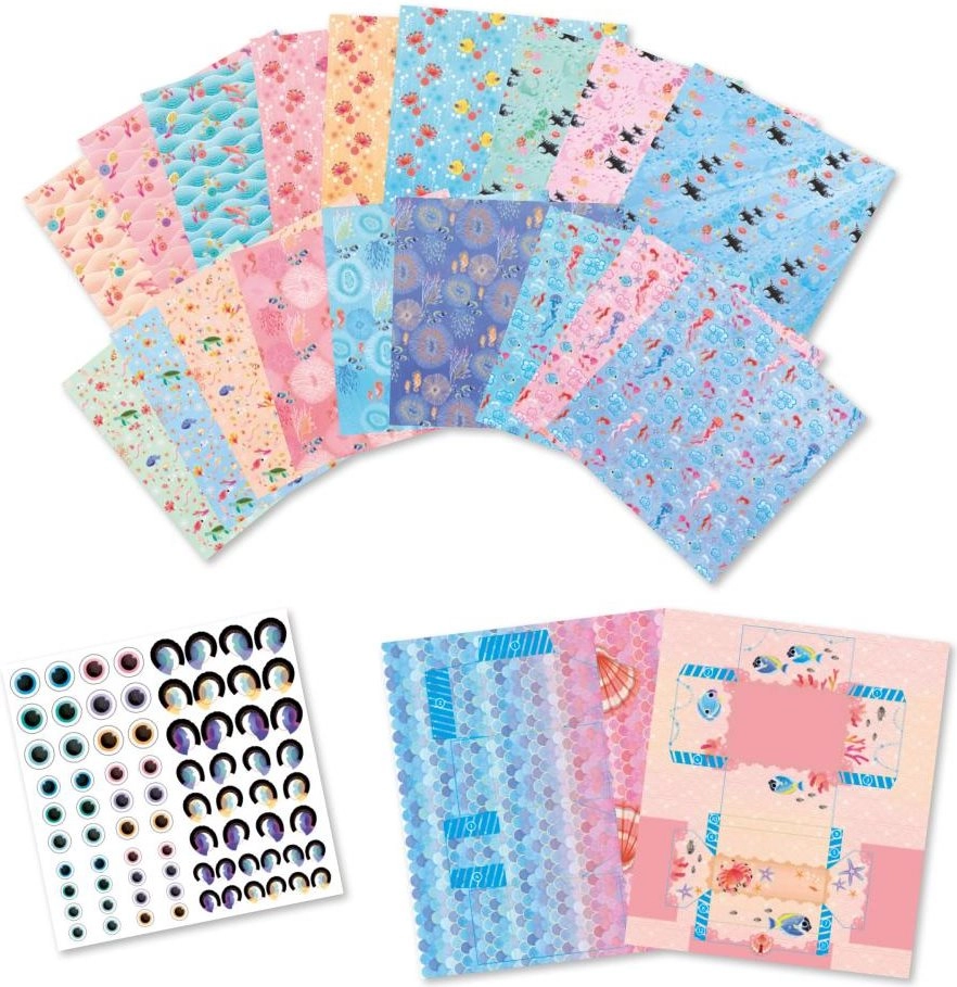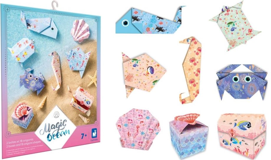 Découvrez un kit ludique de pliage papier sur le thème de l’océan, qui ravira petits et grands créateurs. Grâce aux motifs colorés et aux autocollants fournis, les enfants développent la motricité fine, entraînent leur habileté et leur patience et réalisent de jolies formes marines ainsi que des boîtes cadeau.