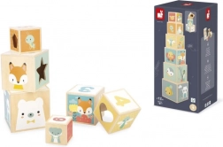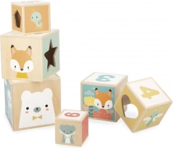 Des cubes en bois lisses, ornés d’animaux adorables et de couleurs douces, invitent au jeu et résistent à un usage quotidien.